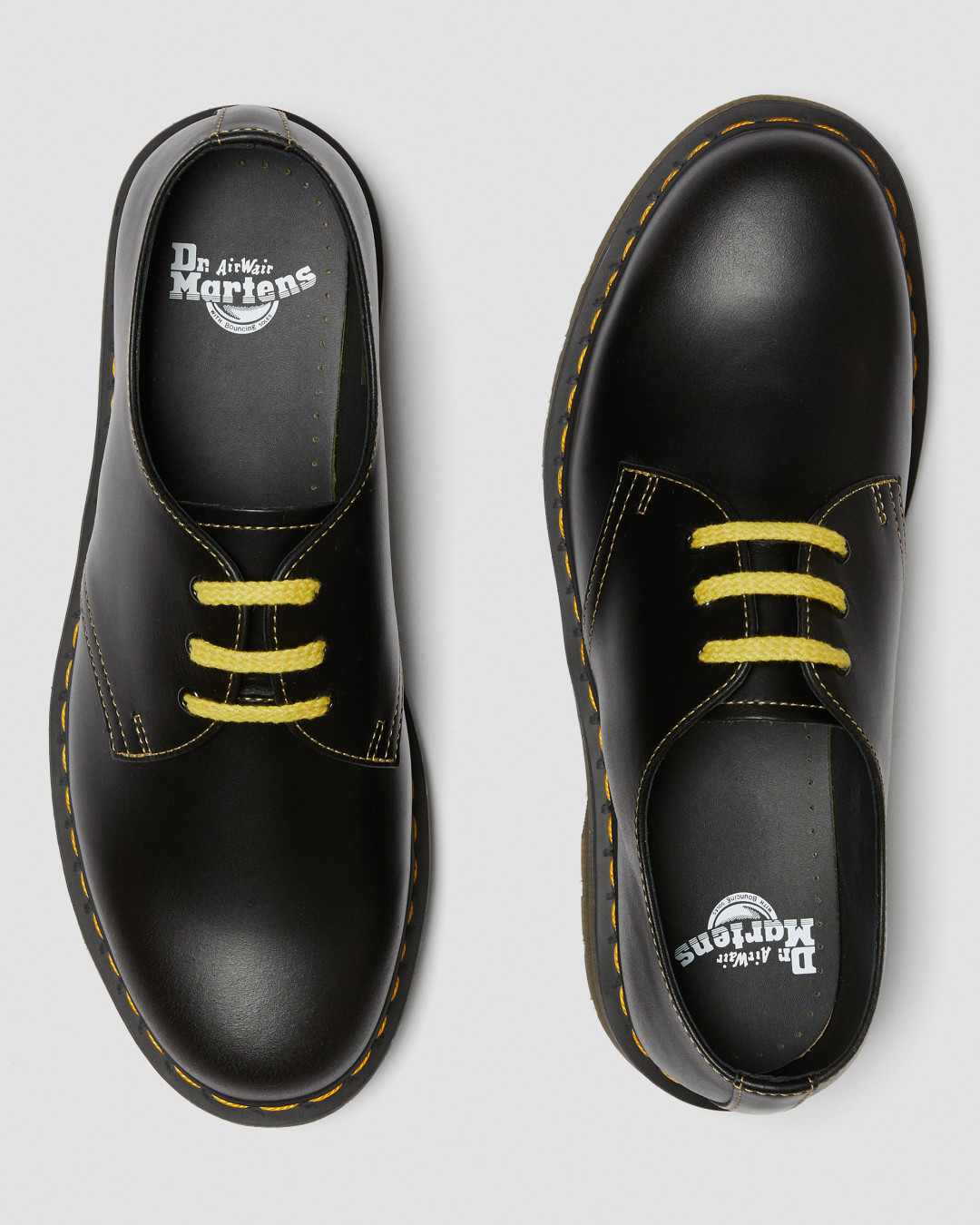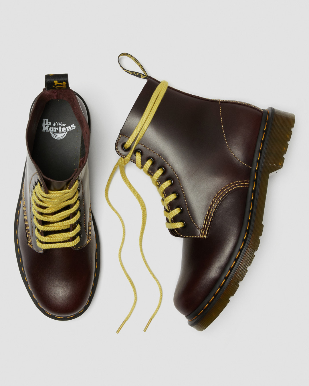 При создании юбилейной коллекции Heritage Distortion в честь 60-летия Dr. Martens использовались фирменные элементы бренда, его архивы, а также легендарные силуэты. Так модели 1460, 1461 и 2976 теперь представлены в темно-сером и цвете Oxblood, а выполнены из новой премиальной кожи Atlas. Все они имеют фирменную желтую прострочку по канту и по верху ботинка, а также желтые шнурки.