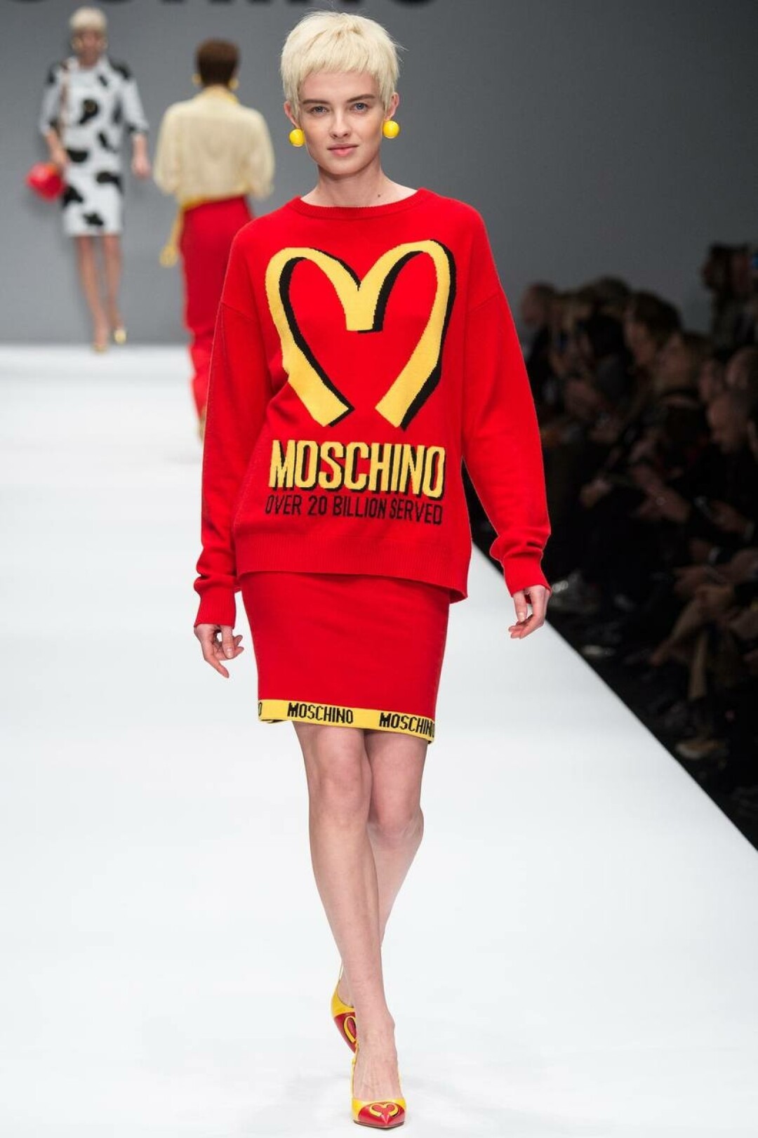 Подиум также не остался в стороне от фастфуда. Громкая и яркая коллекция, вдохновлённая Макдоналдс - это коллекция Moschino осень-зима 2014. В ней Джереми Скотт размышлял на тему культуры 90-х, куда несомненно попадает и фастфуд. Сам Мак, кстати, обиделся и назвал показ насмешкой над сотрудниками.
