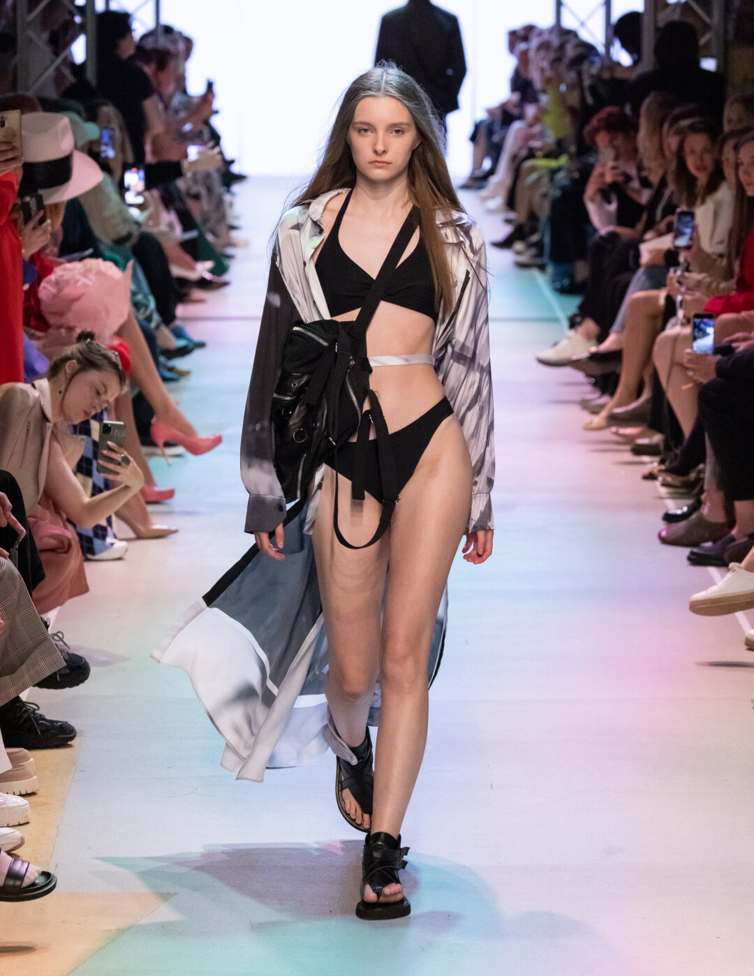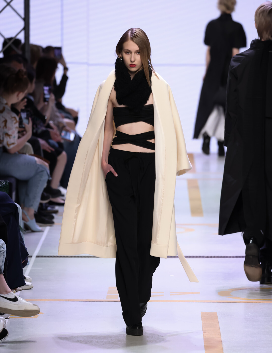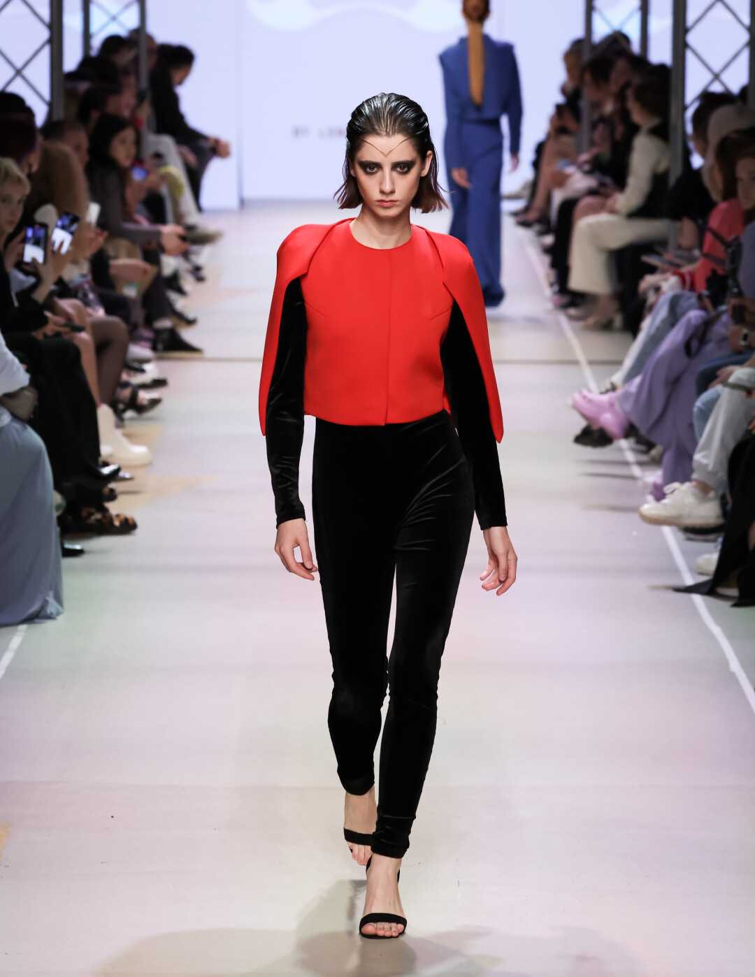 LUBOVI – молодой бренд одежды, придерживающийся вектора экологичного развития. При производстве одежды марка использует только натуральные материалы и упаковку из переработанного сырья. На показе бренда были представлены изделия сразу из двух коллекций — Convoité и Éclat de beauté. Основными цветами стали белый, черный и светло-бежевый. Корсеты, рукава-фонарики и невесомые юбки из черной полупрозрачной шелковой органзы задали коллекции общее романтичное настроение. Помимо инфантильных топов и платьев, бренд LUBOVI также представил базовые топы и шорты из фактурного переработанного хлопка, минималистичное платье A-силуэта и лаконичные жакеты без лацканов.