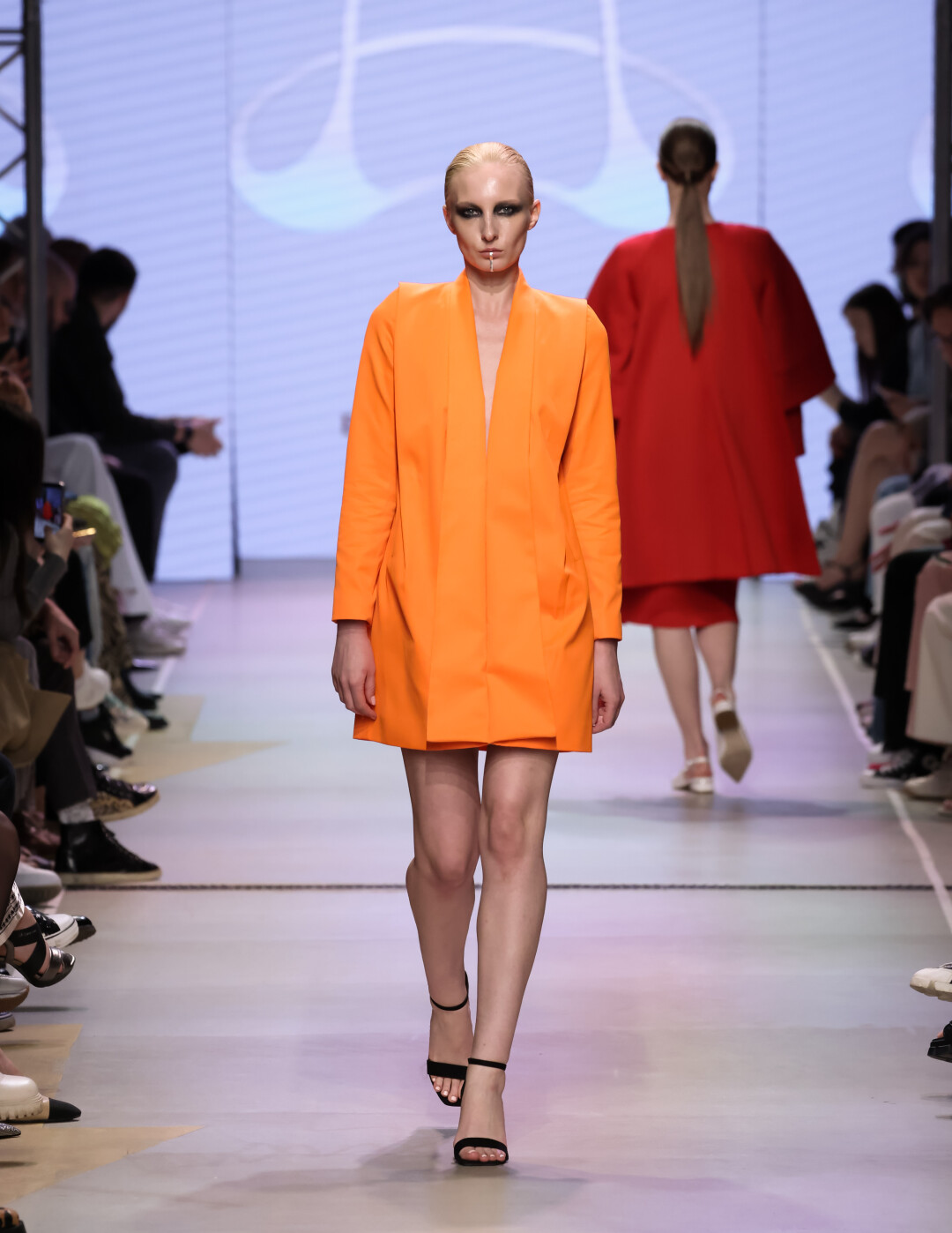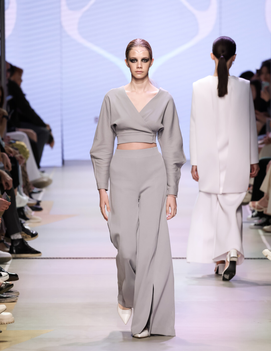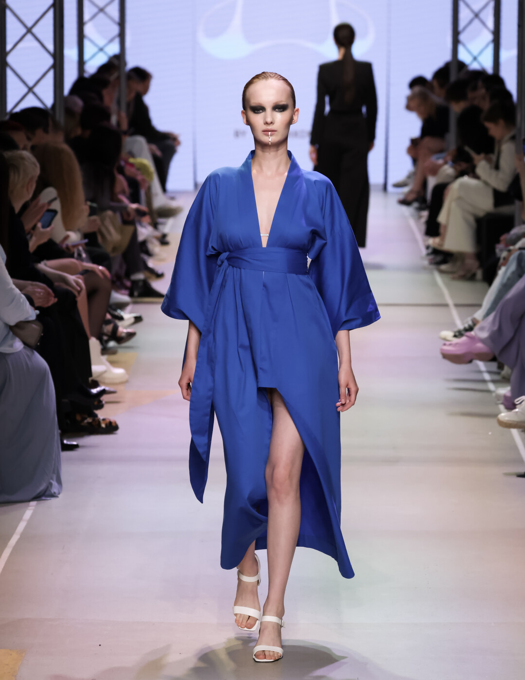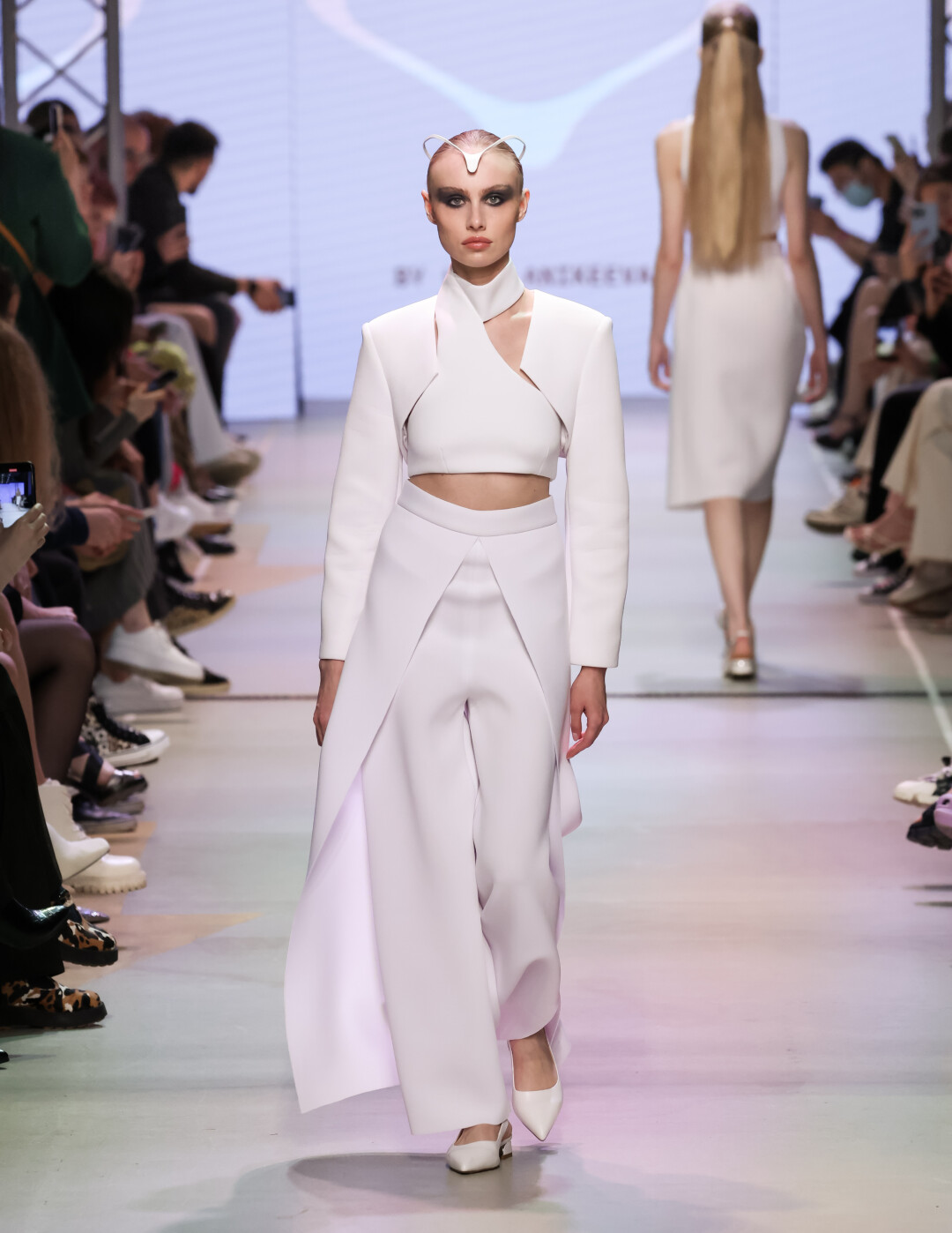 Дизайнер бренда Лена Аникеева на Московской неделе моды представила футуристично-минималистскую коллекцию Nebula. Открывал показ цифровой аватар, ставший связующим звеном для онлайн- и офлайн-линейки бренда и отражающий идею коллекции об образе человека из будущего. В Nebula вошли безупречно скроенные вещи, которые одновременно выглядят и просто, и сложно: платья-трапеции, брюки со шлейфом, удлиненный жакет с нестандартным воротником, асимметричные юбки и универсальные кроп-топы. В цветовую гамму коллекции вошли белый, серый, черный, синий, красный и оранжевый цвета. Принты и замысловатый декор отсутствовали — всю «украшательскую» роль на себя взял неординарный крой.