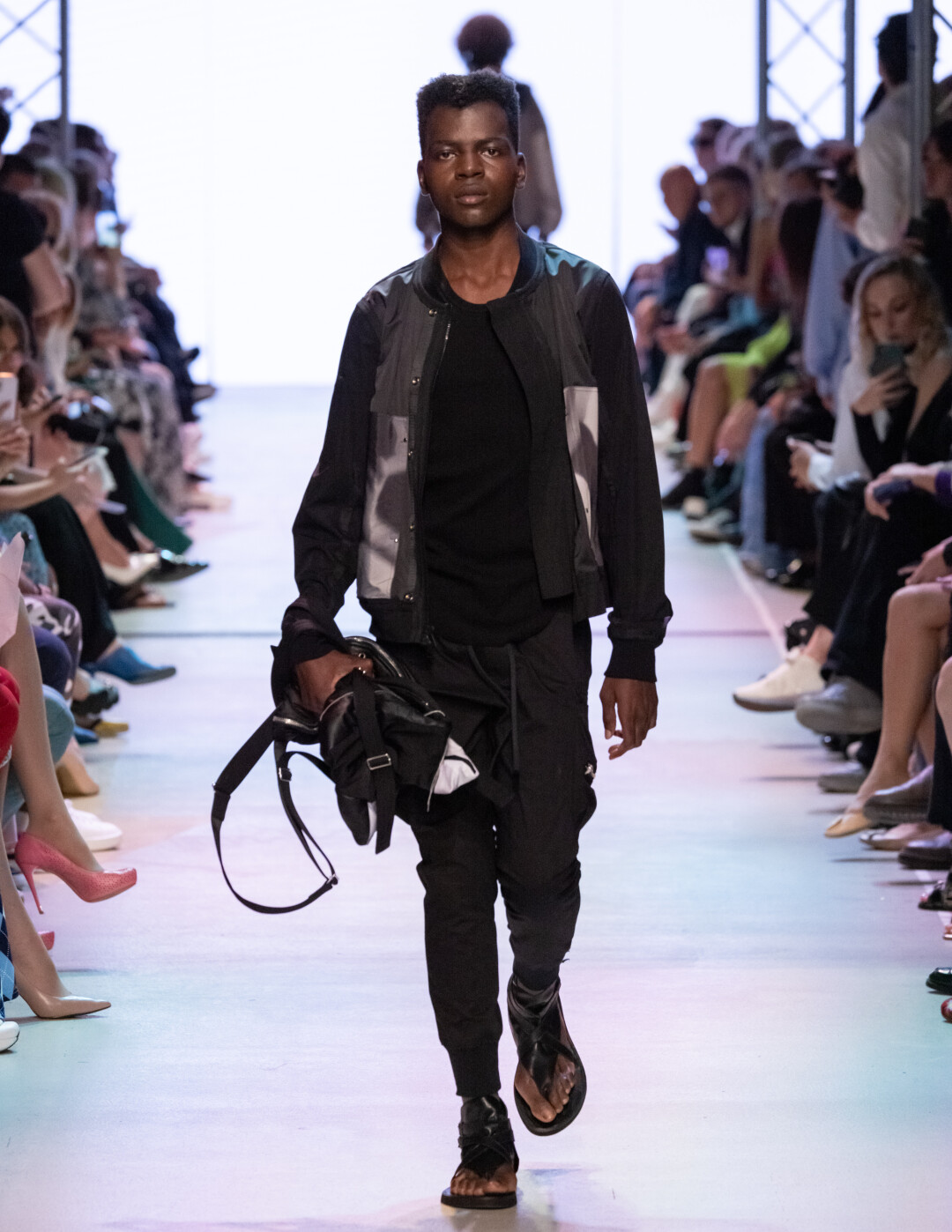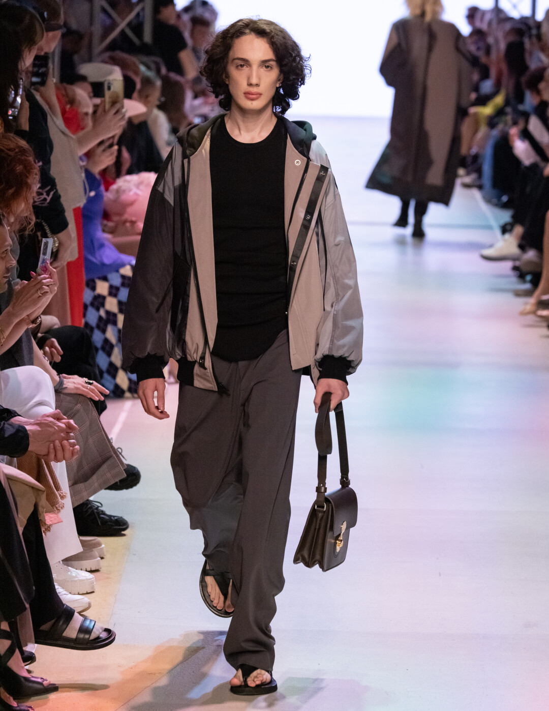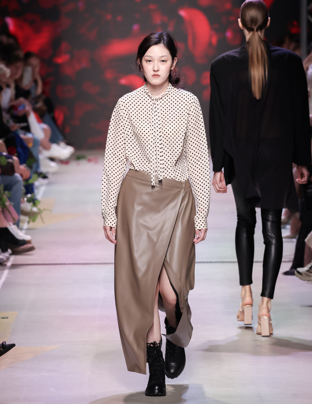 В новой коллекции дизайнер бренда COSHÈ сделала ставку на кожаные вещи: жилеты, юбки, мужские и женские бомберы, куртки, платья соседствовали с отличными по фактуре вещами, что создавало сбалансированный контраст. Кожа также нашла свое проявление в виде оторочек на платьях, пиджаках, куртке и классическом тренче. Яркими акцентами в коллекции стали неоново-зеленый спортивный костюм, изумрудный кожаный бомбер и ярко-голубой брючный костюм. Финальным аккордом показа стало белое платье в пол с открытой спиной из струящейся ткани, которое вполне может стать свадебным нарядом для современной невесты.