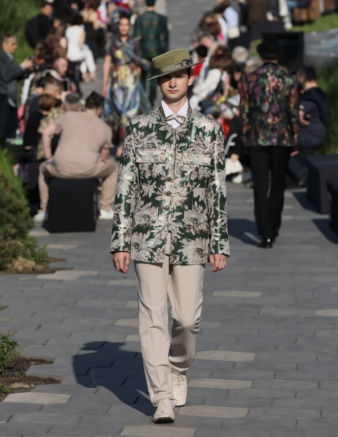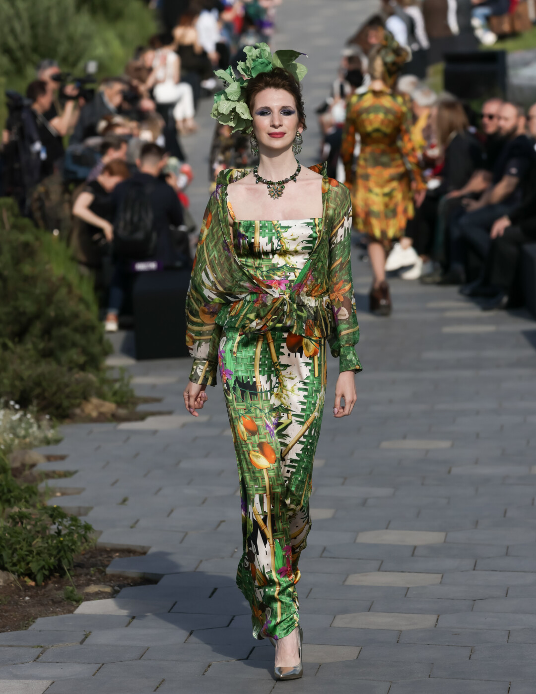 Показ Вячеслава Зайцева прошел в амфитеатре парка «Зарядье». На Московской неделе моды Дом моды Slava Zaitsev презентовал коллекцию в которой соединились театральность, элегантность, классические силуэты и буйство принтов и красок. Модели плавно шли по импровизированному подиуму в утонченных образах, среди которых особенно запомнились струящиеся кафтаны из шифона и шелка с цветочными мотивами, вечерние ансамбли из золотой парчи и «красный блок» коллекции. Каждый наряд сопровождался шляпкой – маленьким произведением искусства. Мужская часть коллекции оказалась не менее интересной: были представлены богато украшенные костюмы-двойки, пиджаки с растительными орнаментами в духе романтизма.