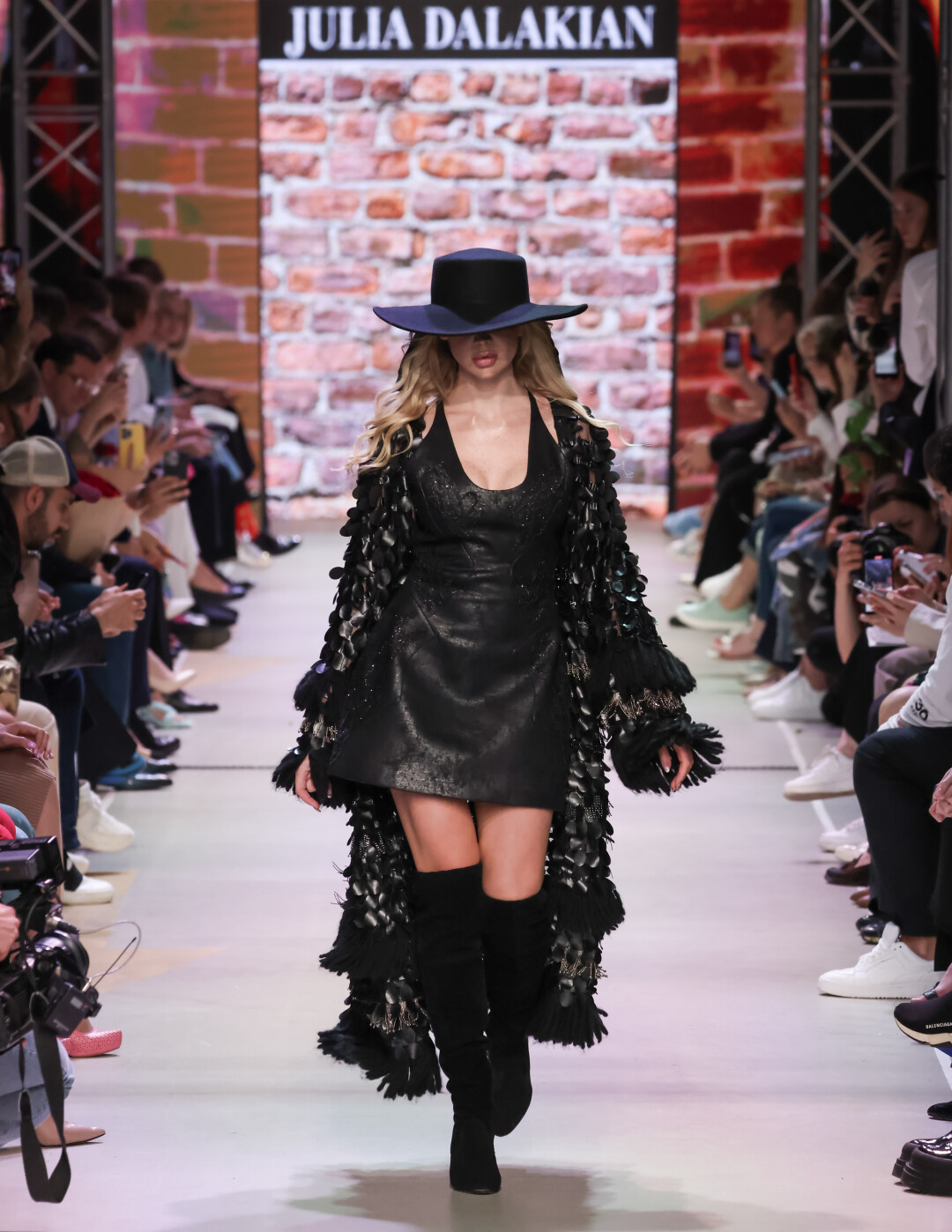На Московской неделе моды дизайнер Юлия Далакян впервые презентовала сразу и мужскую, и женскую линейки. Показ начался с театрализованного видеопредставления. Коллекция вдохновлена атмосферой Rock Cafe и пронизана модными цитатами 70-х годов. В линейке бархат сочетается с нежным шифоном, кожа — с бахромой, пайетки — с твидом. Ключевыми моделями женской линии стали кожаные мини и богемные летящие платья миди и макси. В мужской линейке преобладали костюмы, широкие брюки, бархатные бушлаты с авторской аппликацией и пиджаки, декорированные трафаретной печатью. Для финальной проходки модели объединились в пары – получились стильные парные образы, которые еще больше подчеркнули общую идею коллекции.