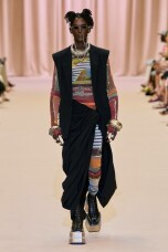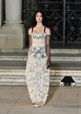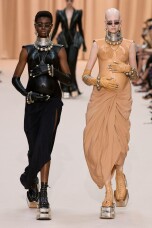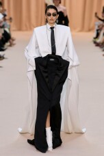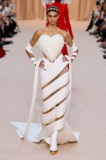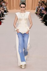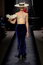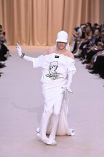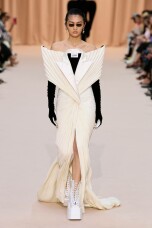 Показ сезона, который хочется разглядывать. Готье славится коллаборация с различными дизайнерами и в этот раз над его кутюром работал Оливье Рустем, который сейчас трудится в Balmain. В показе для Jean Paul Gaultier много тонких оммажей на творение самого Готье. Это и лифы-конусы, корсеты, деконструкции из жакетов, морская тема бренда, а также «приветы» знаковым парфюмам Le Male и Clasique.