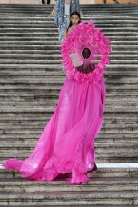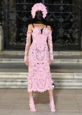 Креативный директор дома Schiaparelli Дэниел Розберри в своё время вернул к жизни бренд и показал также отличное знание истоков и того, что вдохновлялось саму Эльзу Скиапарелли. В этот раз кутюрный показ отличался от того, что мы привыкли видеть на подиуме. Вместо обилия золота и анатомичности, мы увидели много бархата и, конечно, цветов, как символа райского сада. Цветы, кстати, знаковый символ доя самой Эльзы Скиапарелли, которая часто использовала их в декоре в своих творениях.