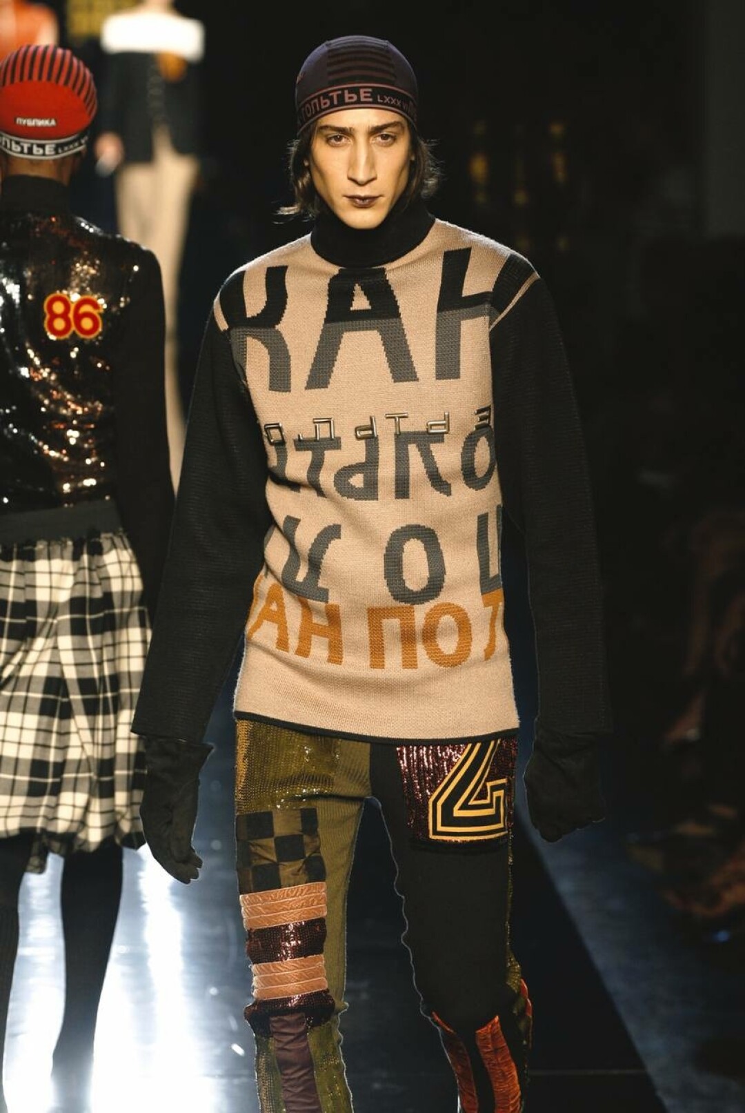Кстати, эта коллекция Готье породила моду на логоманию. На вещах Готье крупными буквами по-русски в духе советских лозунгов было написано имя дизайнера. В дальнейшем идею подхватили другие и стали писать свои названия и лого на вещах.
