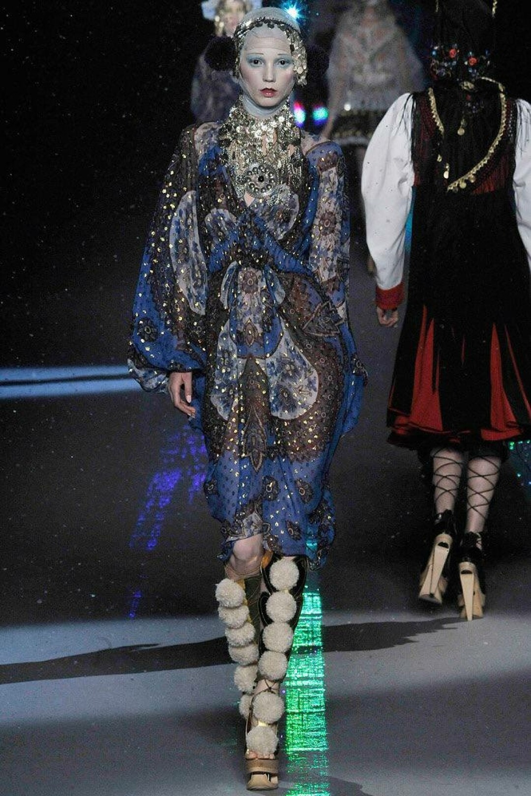 В 2009 году Гальяно вновь обратился к русской тематике. Например, один из образов коллекции – оммаж на картину Сурикова «Боярыня Морозова».