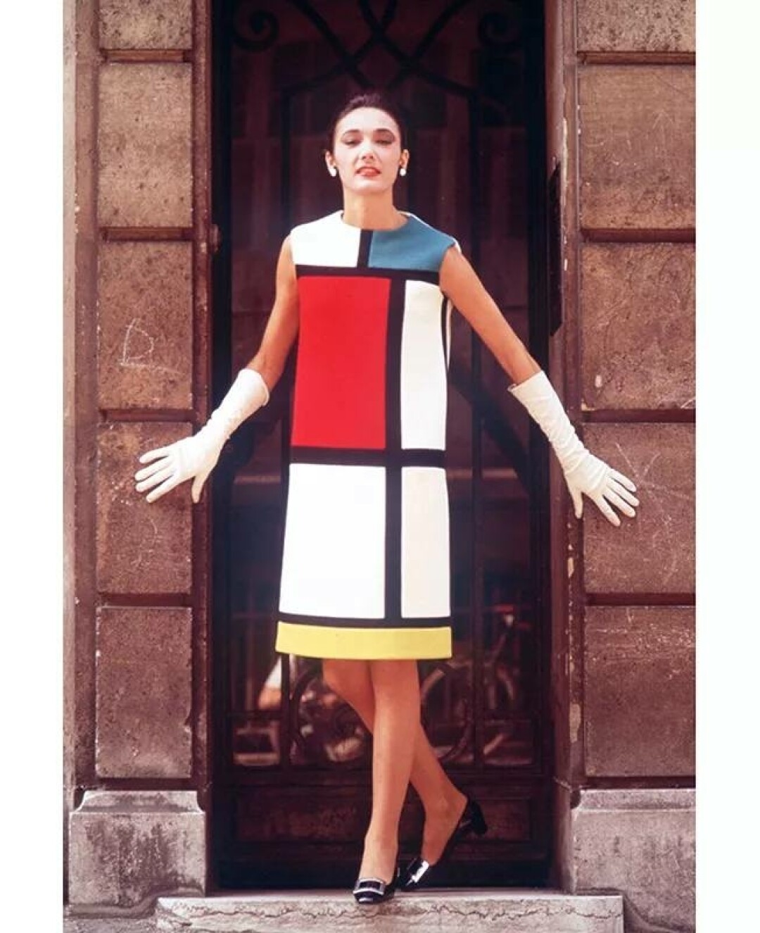 Ив Сен-Лоран вдохновился работами бельгийского кубиста Пита Мондриана.