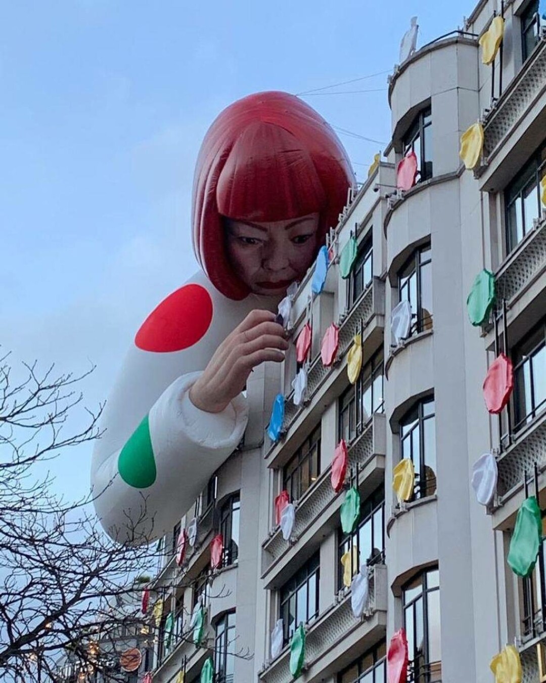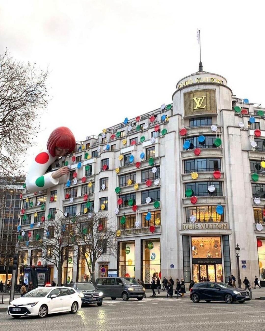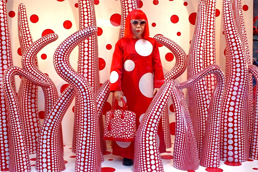 Бренд совместно с художницей выпустил коллекцию в знаковый для Кусами принт - горошек. А также украсил свои магазины безумными и захватывающими арт-объектами.