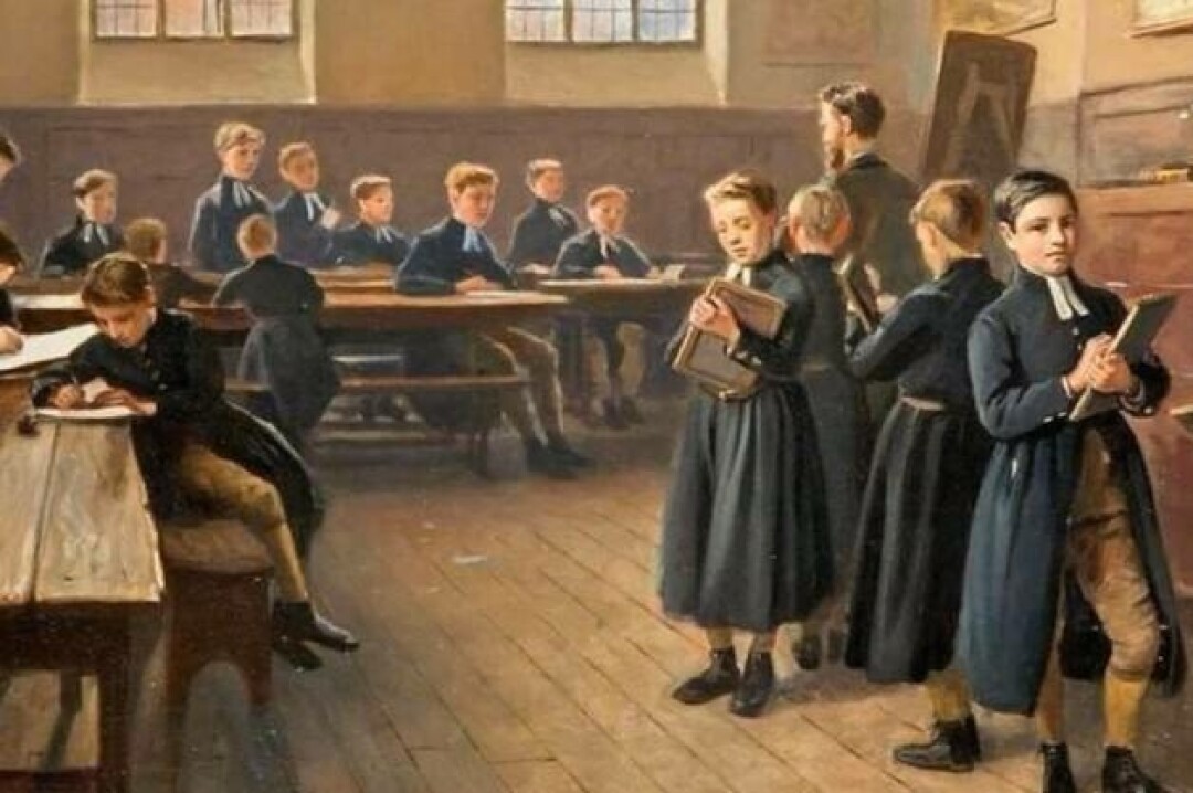 Родиной школьной формы принято считать Британию. Впервые форма появилась в заведении Christ’s Hospital. Учились в ней дети из малообеспеченных семей и сироты, для которых и придумали единую форму в тюдоровском стиле – синее пальто, юбки плиссе для девочек и брюки-галифе для мальчиков. А отличительной стилевой чертой стали желтые-гольфы. По одной из версий синий цвет формы был выбран, как цвет, который настраивает на покорный лад учеников. Но не будем забывать о том, что одевать сирот в дорогое вряд ли было возможным и в целом нужным, поэтому важную роль играл и факт того, что синяя ткань была просто дешевле.