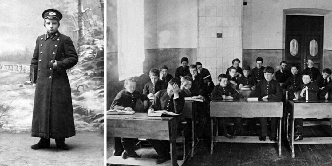 Форма появилась благодаря Николаю I, который издал указ об обязательной униформе в госучреждениях. Эта реформа коснулась и гимназистов со студентами, которых обязали носить форму, созданную по подобию формы гвардейцев - синие куртки и мундиры с красными воротниками.