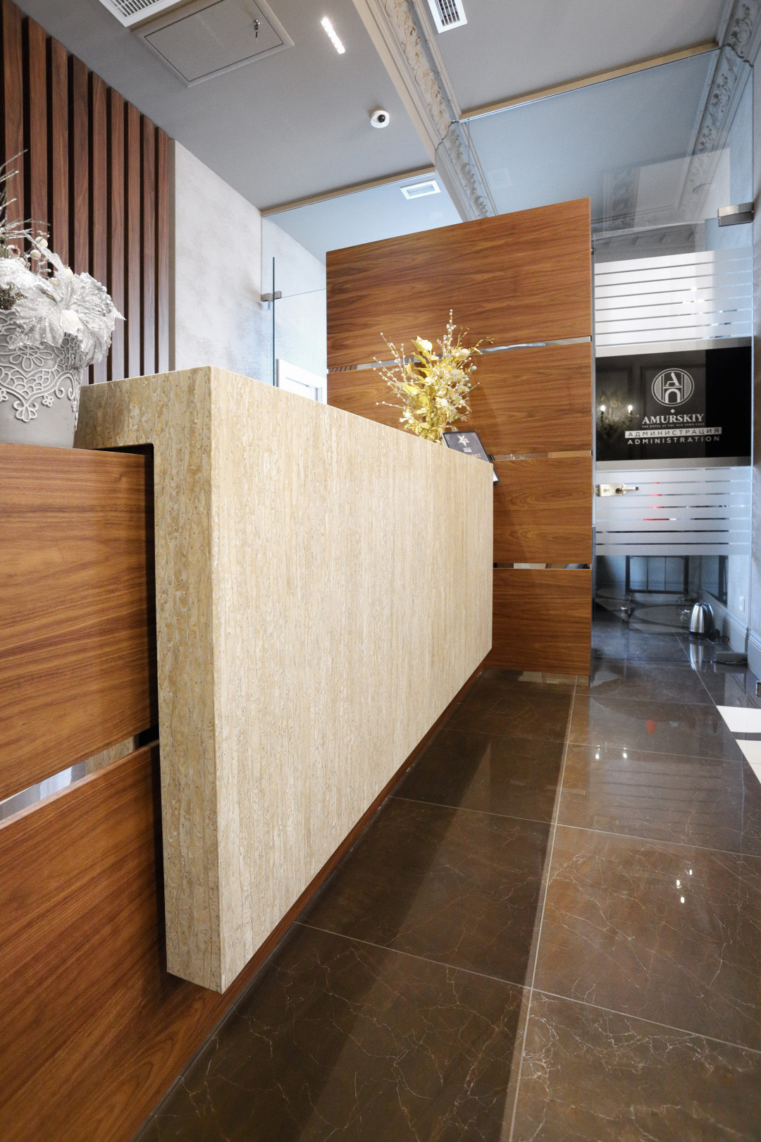 Так как проектирование «Амурского» — наш первый опыт в сфере проектирования гостиниц, мы начали работу с глубокого изучения темы отельного бизнеса. В том числе исследовали все, что касалось законодательной части. Прежде чем приступать к созданию пространства, требовалось изучить особенности данной сферы бизнеса. Мы спроектировали не только внутреннее пространство отеля, но и разработали часть архитектурных решений. Так появился второй парадный вход в отель со стороны улицы Марата.