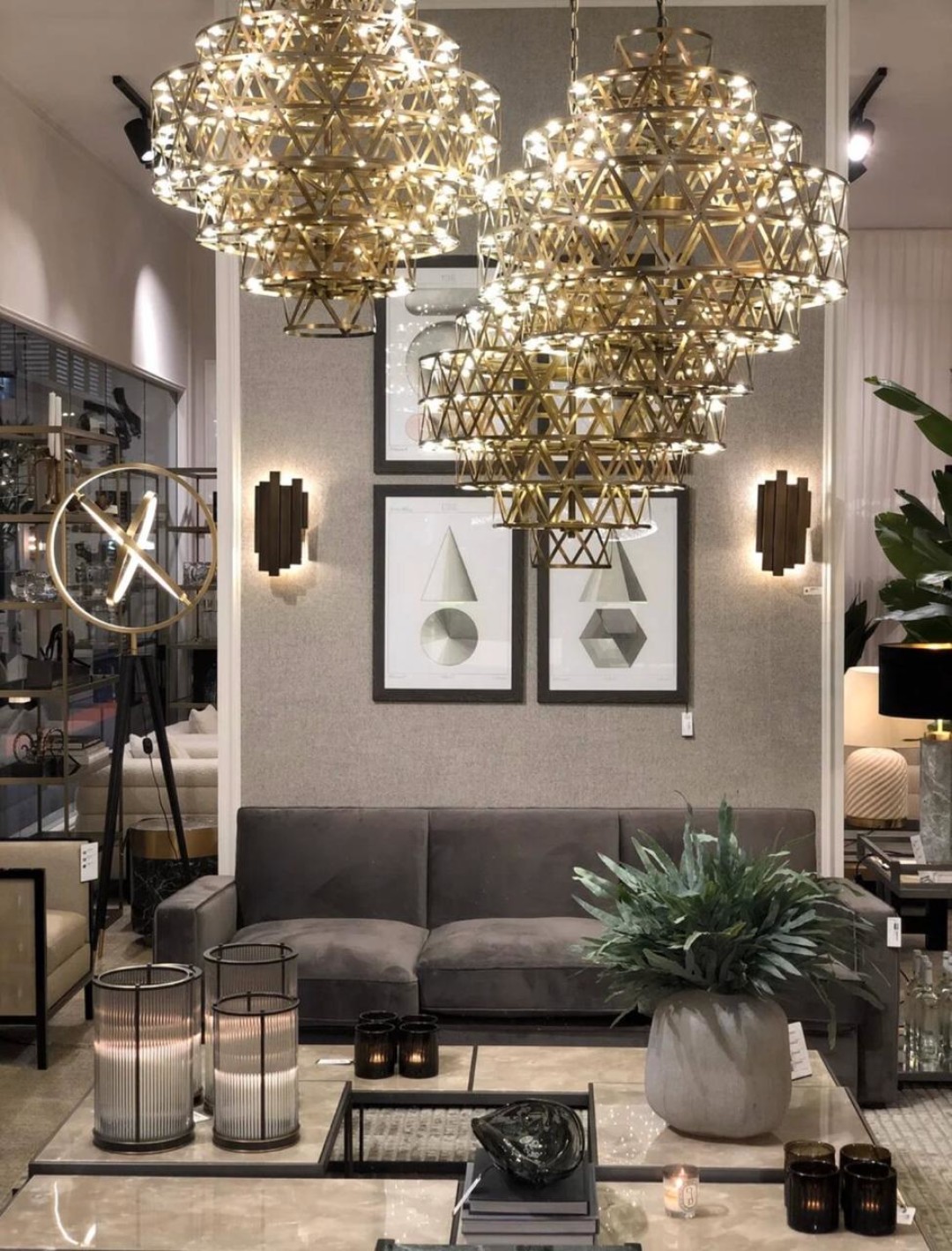– посмотреть реплики и оригиналы люстр, точечного света (выбрать оттенки золота);