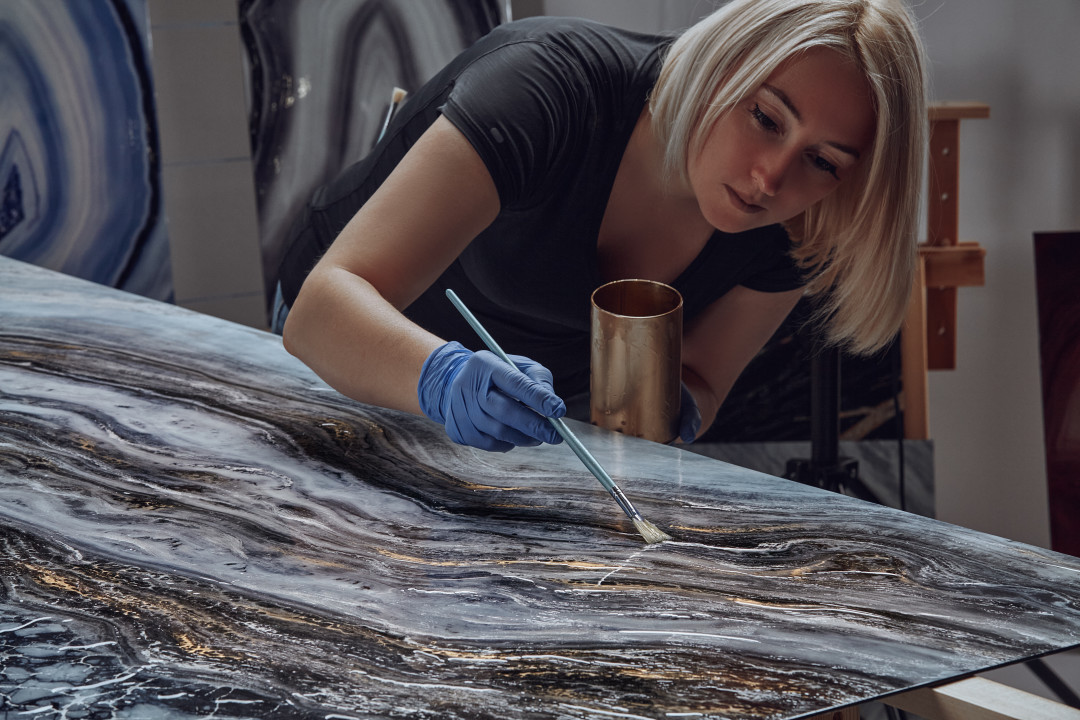 спилов и слэбов. Срок изготовления занимает от двух до четырех недель, в зависимости от сложности проекта. Также в мастерской есть готовые к продаже изделия.