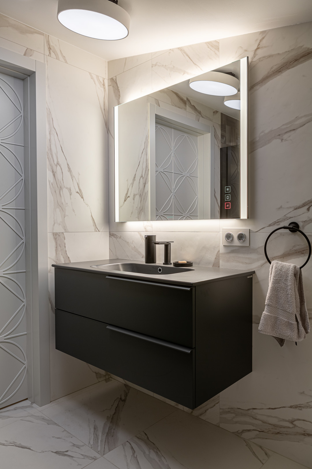 Как правило, самое сложное в любом интерьере — момент перед финишем, когда множество подрядчиков собирают мебель, дорабатывают завершающие штрихи. Задача дизайнера при этом — коммуникативная: организовать этот процесс так, чтобы он не доставил дискомфорта заказчику. А когда для всех проект в радость — тогда живешь потом в доме с самыми лучшими эмоциями. Ведь мы работаем для того, чтобы люди полюбили свой дом. В итоге рождается результат, за которым стоит огромная кропотливая работа. В нашем случае — легкий и спокойный интерьер, который радует заказчиков каждый день.