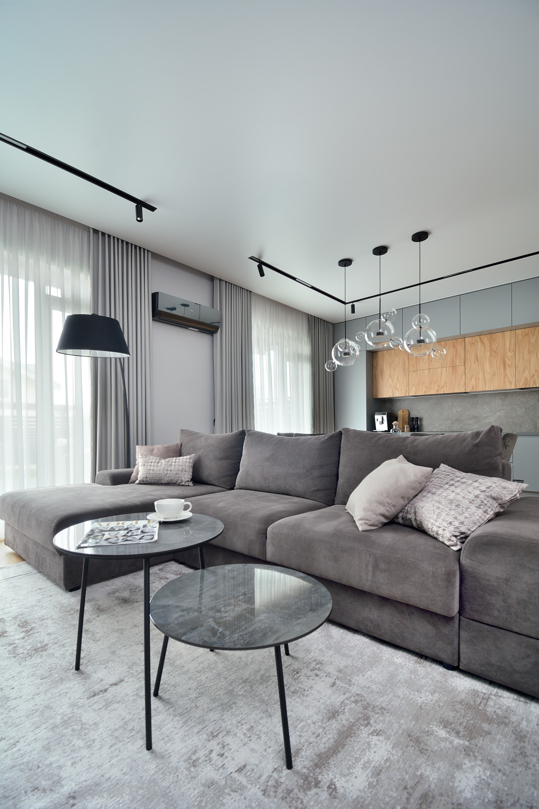 Хозяева этого дома мечтали жить в жилище, оформленном в спокойных тонах, в котором нет×ничего лишнего. Никаких ярких акцентов изначально и не предполагалось. Застройщик, к нашей большой радости, предоставил возможность спроектировать планировку самим. Так, на первом этаже получилась просторная гостиная, объединенная с кухней, большая гардеробная и санузел. На втором разместились спальня, детская комната для двух мальчишек и ванная комната с окнами. Этот интерьер мы проектировали почти два года — от первой встречи до финальных аккордов.
