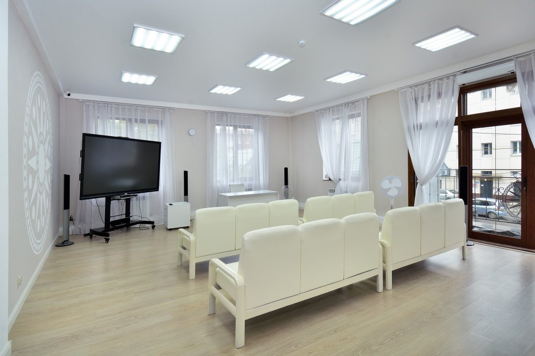При проектировании космологического центра важно соблюдать определенные стандарты и регламенты. В первую очередь это касается материалов на стенах и обивки мебели. Все поверхности должны быть устойчивы к обработке хлорсодержащими и другими дезинфицирующими средствами. Это важно для соблюдения санитарных норм, но существенно ограничивает дизайнера в спектре материалов и при выборе интерьерных решений.
