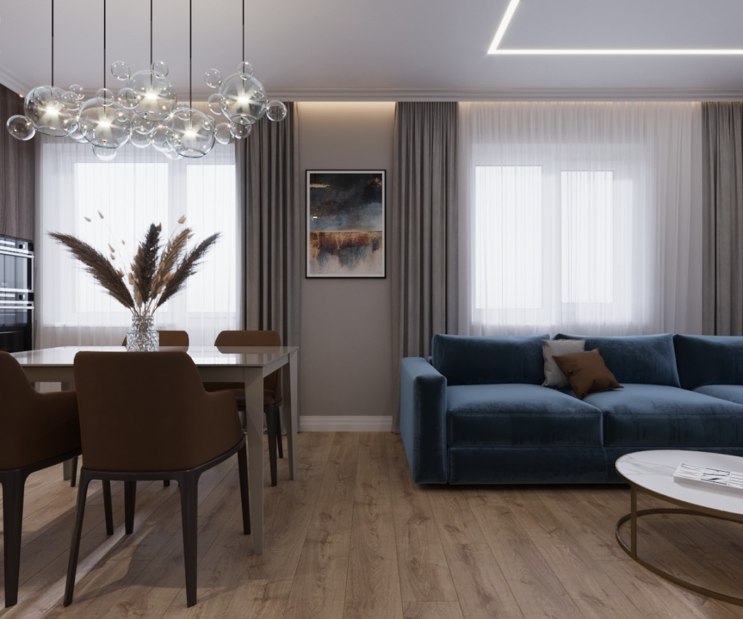 На чем точно никогда не нужно экономить, так это на достойном напольном покрытии, с применением натуральных материалов, дверях, мебели, элементах освещения. Эти позиции будут самыми дорогими в интерьере, но оно того стоит.