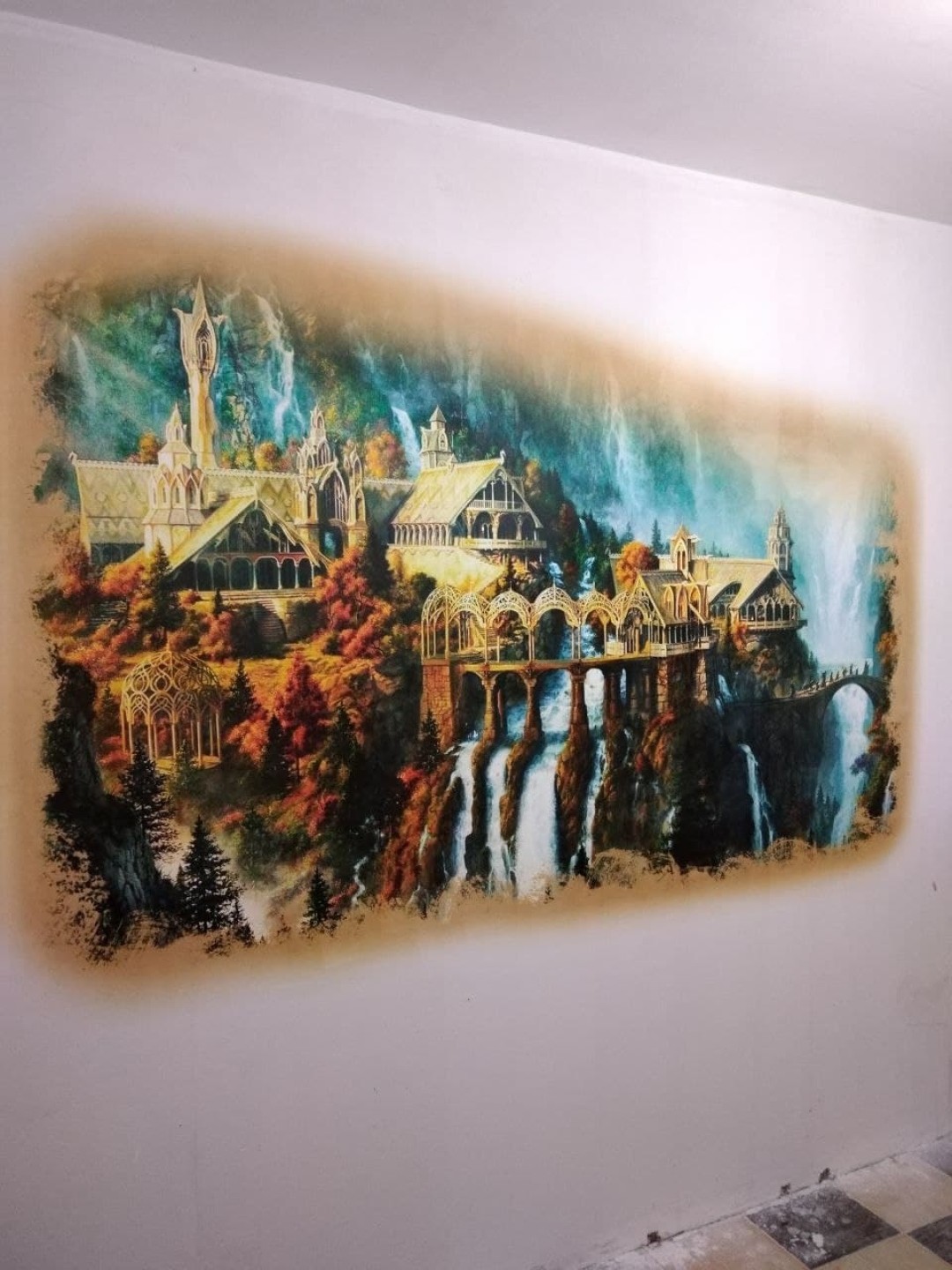 Так что если очень хочется роскошь – всегда можно что-то придумать. Например, после нанесения принта на стену инкрустировать туда драгоценные металлы, камни и подчеркнуть эксклюзивность и дороговизну работы. Думаю, это будет нереально эффектно. Мы такого еще не исполняли, но готовы поработать с таким проектом. И имеем достаточный опыт для подобных работ в коллаборации с кем-то.