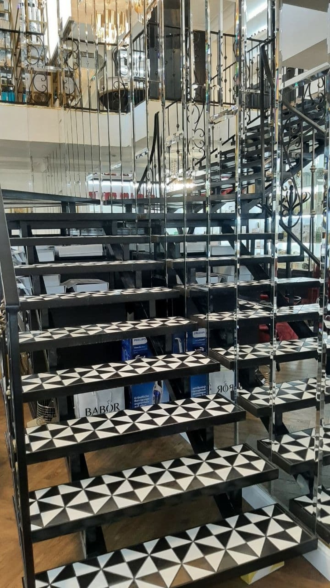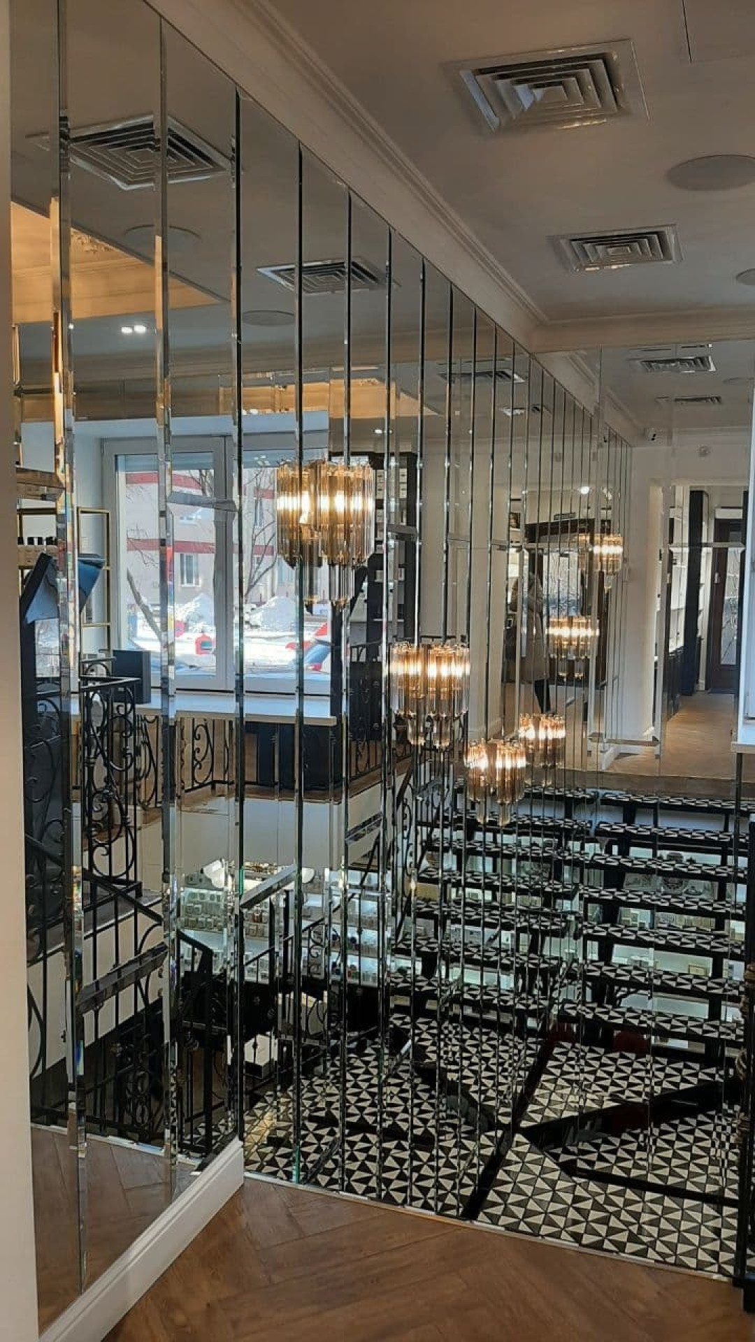 Наша компания достаточно давно работает на рынке. Со стеклом и зеркалом мы на «ты». У нас большой штат: опытные сотрудники, дизайнеры и конструкторы. Из недавних примеров, мы работали над оформлением зеркальных стен в гостинице History: было применено интересное решение – сочетание бронзового зеркала и черных маленьких плиток. Дизайнер планировала сделать черные вставки с применением плиток, но в воплощении это выглядело не так хорошо. Мы предложили черные зеркальные вставки, которые смотрятся очень красиво.