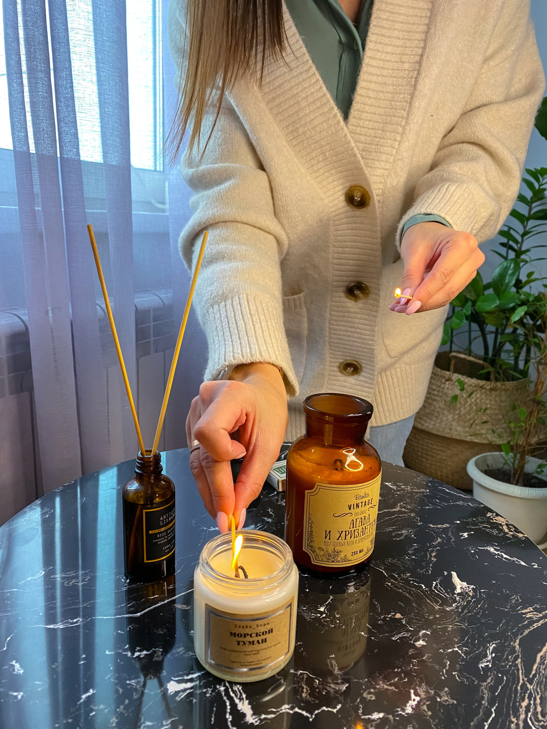 Маленькие генераторы уюта – аромасвечи. Их теплый свет поможет создать праздничную атмосферу или настроить на релакс после трудного рабочего дня. А стильные диффузоры не только украсят, но и будут поддерживать аромат в течение длительного времени.