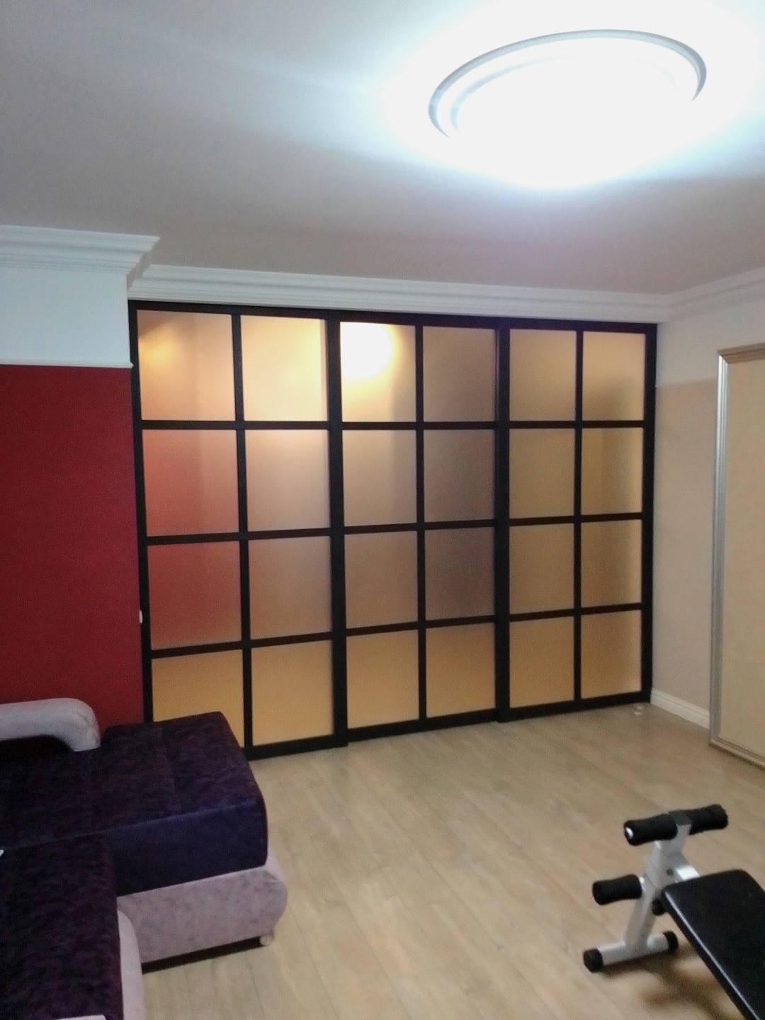 Мы производим установку перегородки для зонирования помещения без рельса на полу. Ведь в него забивается мусор. Благодаря нашей технологии пол остается целым и комфортным в эксплуатации, не нарушается эстетика единого пространства.
