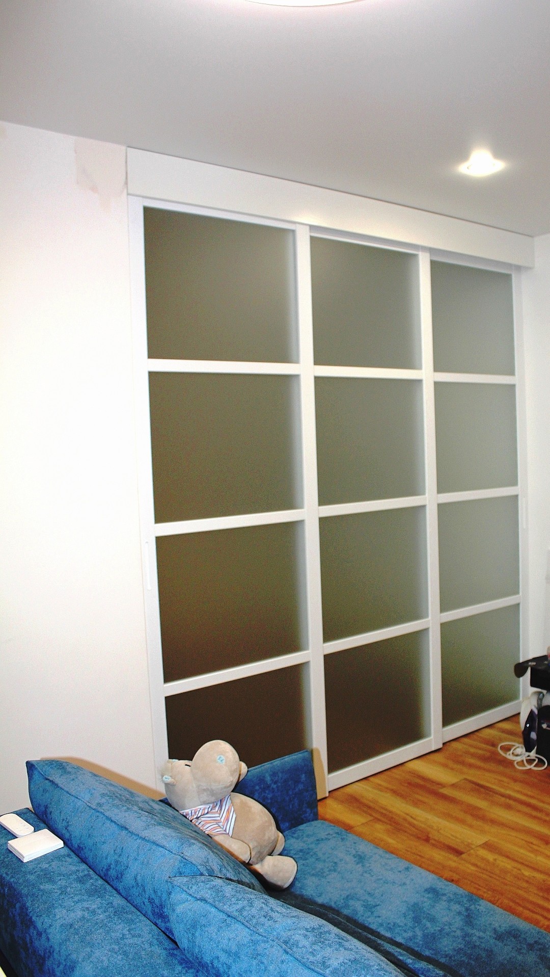 Если хочется добавить еще больше свободы пространства и одновременно уединиться, мы рекомендуем использовать матовое стекло в дверях-купе. Оно пропускает солнечный свет, обеспечивая комфортный уровень освещенности в отделяемом помещении, но создает преграду для посторонних взглядов.