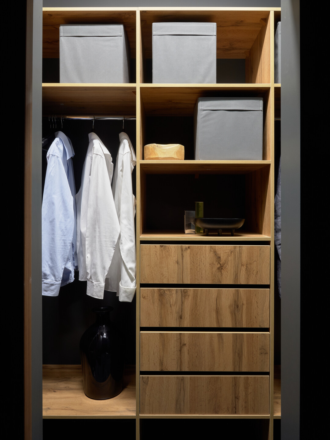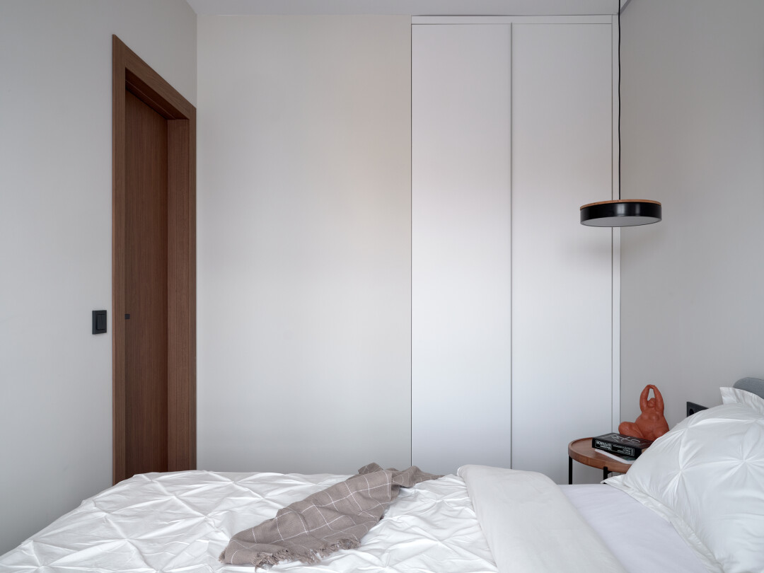 предусмотреть полноценную гардеробную, чтобы максимально освободить пространство от мебели.
