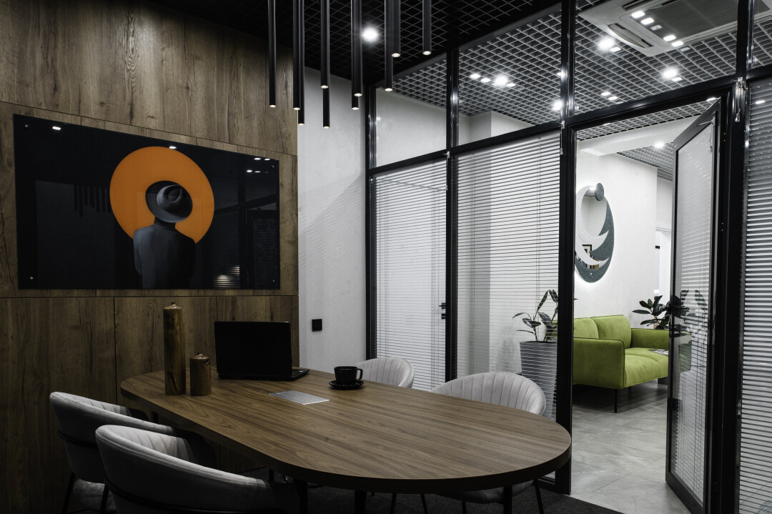 Переговорная комната — это трансформируемое пространство, в котором может быть и кухня для сотрудников, и место для важных бесед. Дополнительная