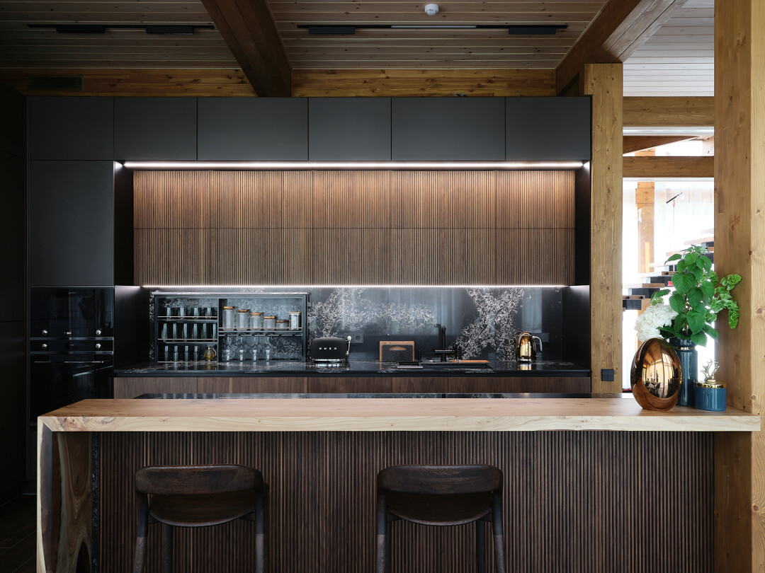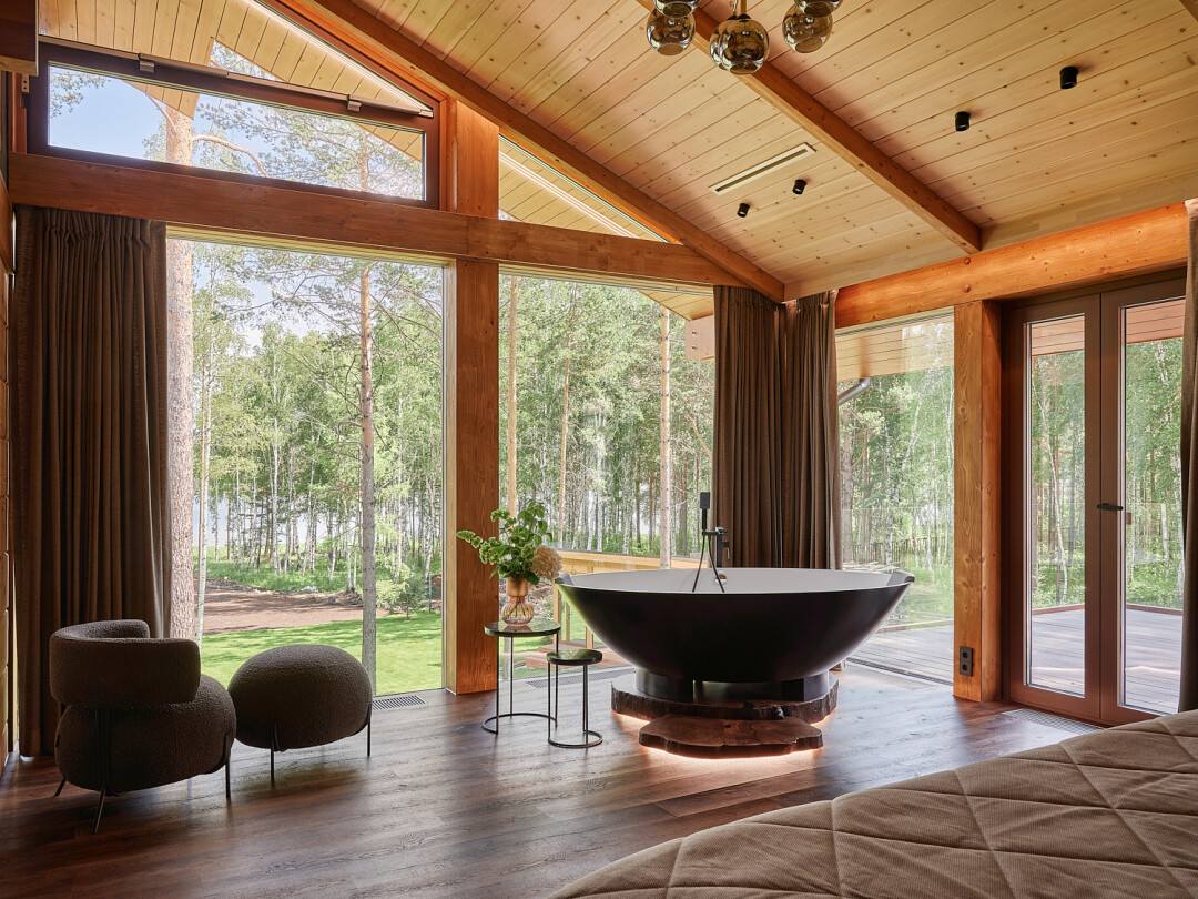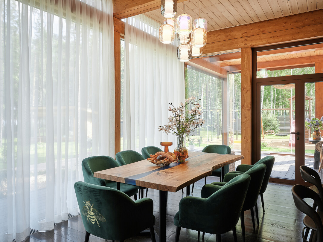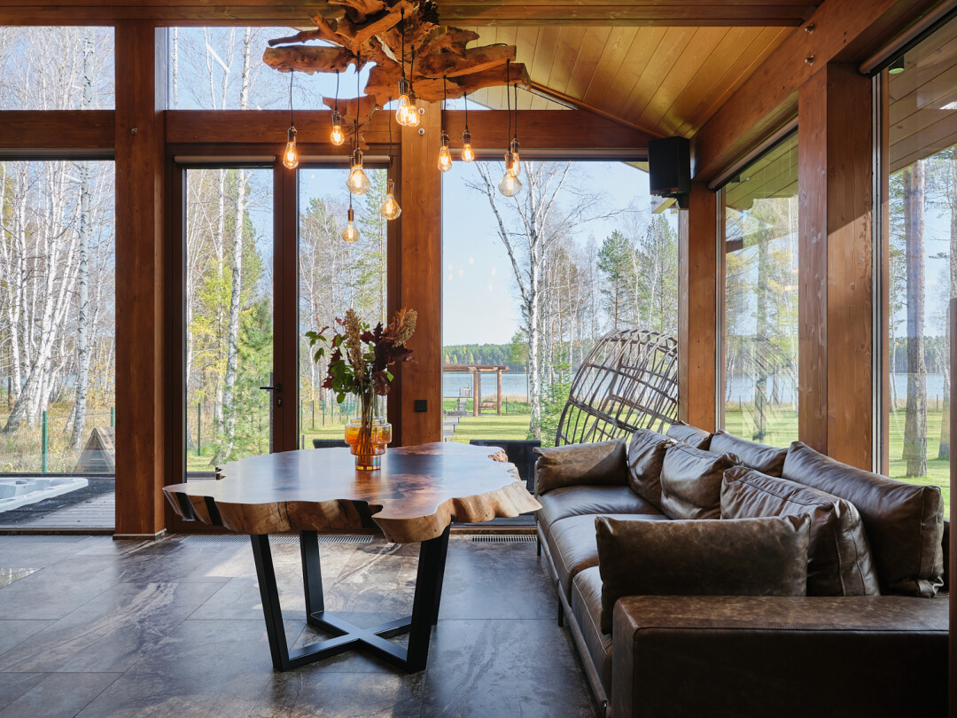 Вся обстановка дома продумана до мельчайших деталей, чтобы создать атмосферу уюта и комфорта. Интерьер органично сочетает в себе современные технологии и неповторимую красоту живописных окрестностей. Огромные панорамные окна открывают великолепные виды на окружающую местность. Внутреннее убранство дополняется отделкой и мебелью из натуральных материалов, которые придают интерьеру еще большую естественность.