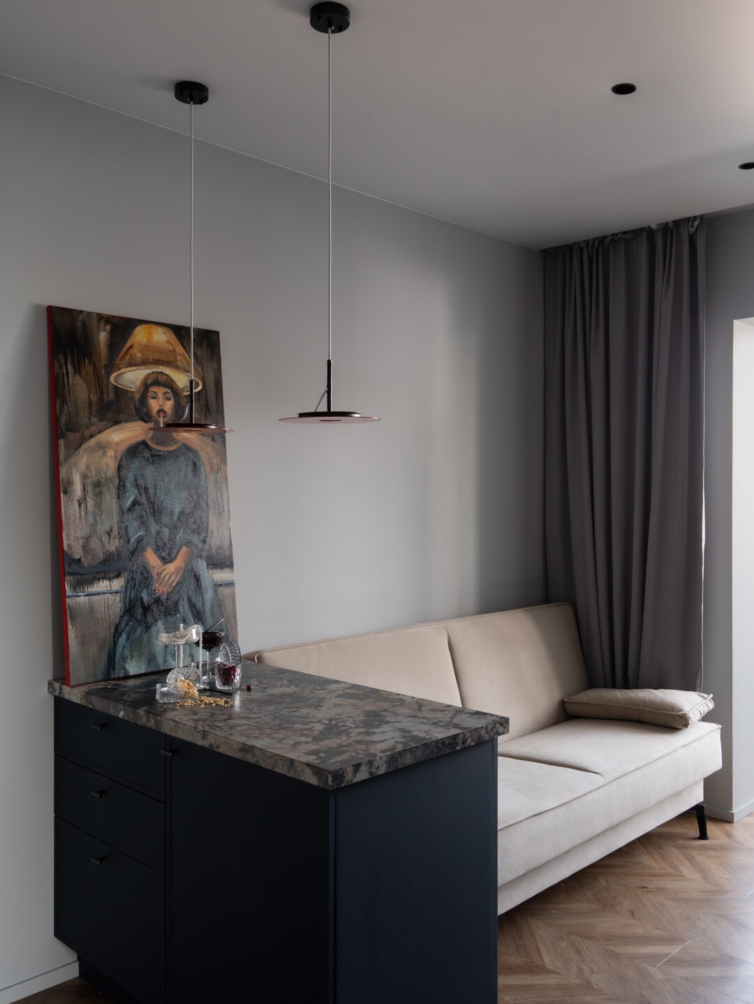 Этот интерьер – нетривиальное сочетание скандинавского и современного стилей в одном пространстве. Авторские картины наполняют его смыслом и эмоциями, добавляют оригинальные нотки и придают особенный колорит. Как создавался интерьер и что он в себя включает, рассказали авторы проекта, дизайнеры Екатерина Голышкина, Мила Леонова, Владислава Ильина.