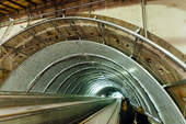Из трех связанных между собой пересадочных станций «Спасская» – самая короткая, ее глубина всего 53 метра. И самая светлая – интерьер вестибюля выполнен в натуральных бежево-желтых тонах.