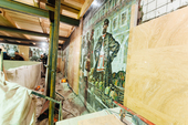 Кроме того, в мозаике использованы мотивы из классической русской литературы, в сюжетах которой герои нередко оказывались на пресловутой площади. Не обойдены вниманием и сами литераторы. Если приглядеться, на панно можно увидеть Гоголя, Пушкина, молодых Толстого с Достоевским рядом с персонажами их романов – Раскольниковым, Сонечкой Мармеладовой и Филипком. Также автор изобразил и собор Спас на Сенной, который войдет в восстановленный ансамбль Сенной площади.