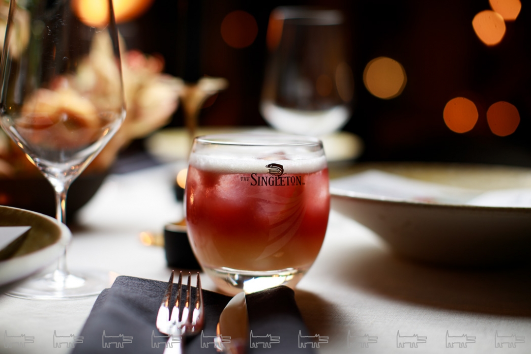 Также идеальным сопровождением к ужину стали коктейли на основе The Singleton: New Deli Sour c вином, настоянном на специях, и BBQ Punch c апельсиновым джемом, биттером и копченым соусом.