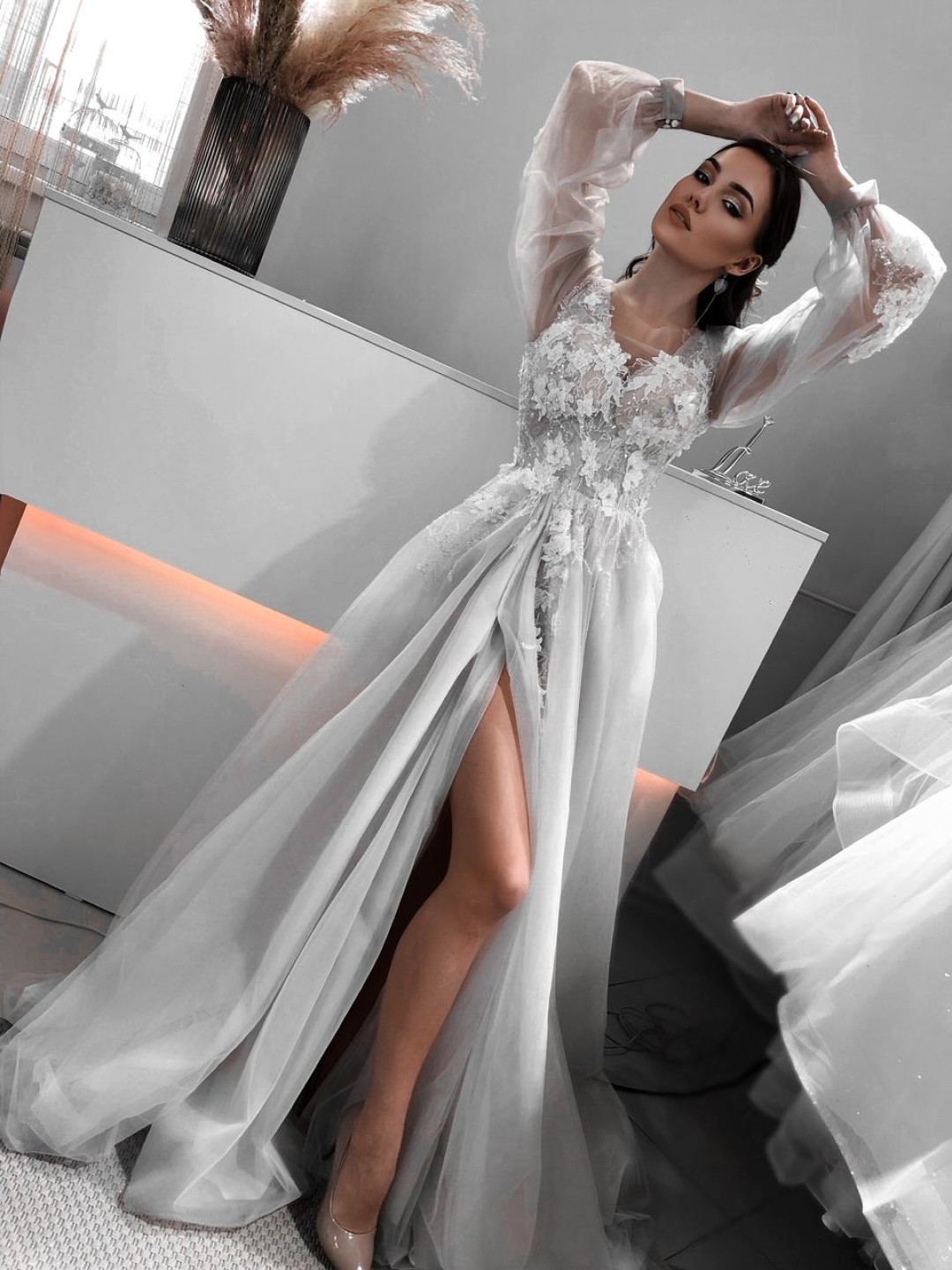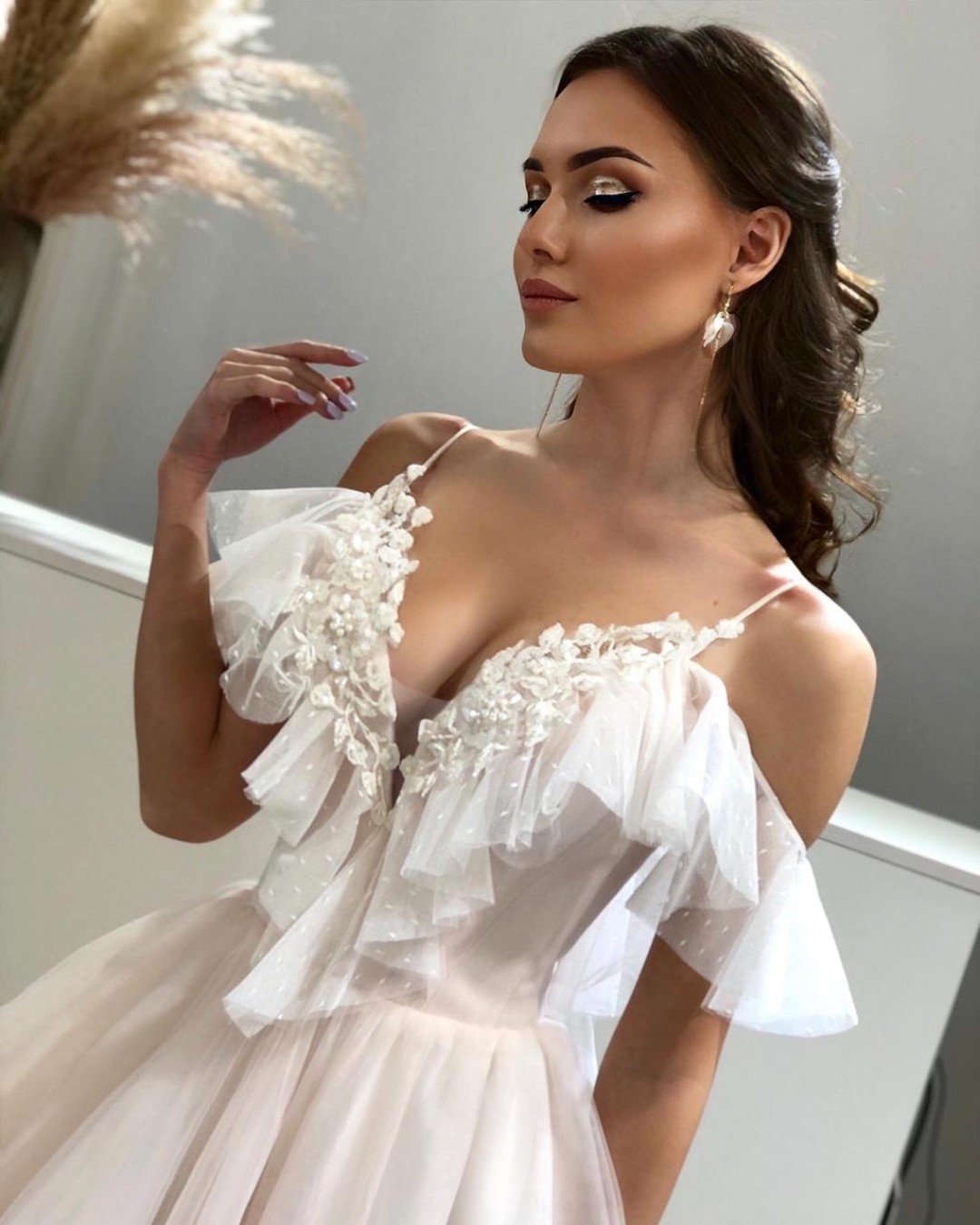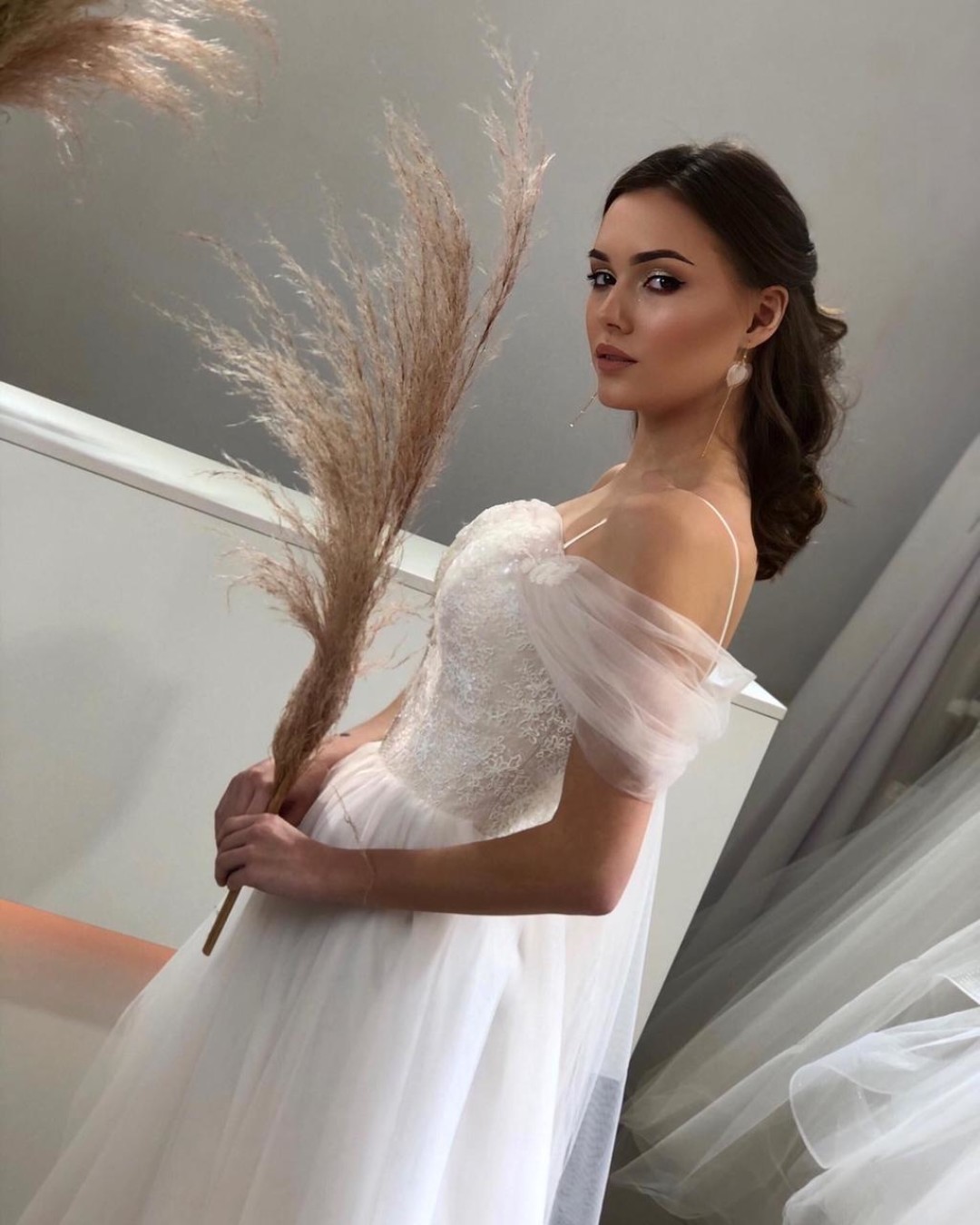 В нашей студии мы осуществляем полный подбор образа и все, что с этим связано. По большому счету, все зависит от формата свадьбы и предпочтений молодоженов. Реально купить красивое свадебное платье в длине миди от 8–10 000 рублей, в пол – от 15–20 000 рублей