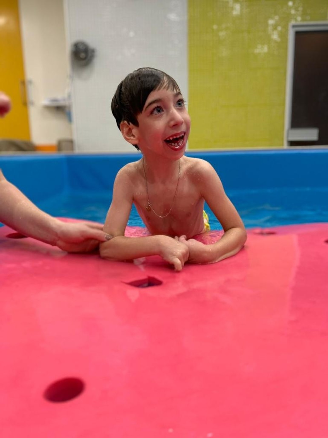 И вот Илюша попал в программу дополнительной реабилитации детей с ограниченными возможностями здоровья, реализованную с использованием средств гранта президента на развитие гражданского общества, предоставленного Фондом президентских грантов. Сначала мальчик пугался всех: и тренера, и бассейна, и доктора. Даже заходить не хотел. Но постепенно освоился, стал терпеливо лежать на сеансе логопедического массажа, повторять все упражнения за врачом. А уж когда Илюша научился нырять, счастью его не было предела! Теперь уже он бежал в бассейн, «давал пять» тренеру, здоровался с каждым разом все чётче и чётче, переодевался уже самостоятельно и быстрее приступал к занятиям. А ещё у Илюши появился друг, такой же спортсмен, партнёр по тренировкам. И после тренировок мальчики подолгу возились вдвоём в игровой комнате на радость счастливых мам.