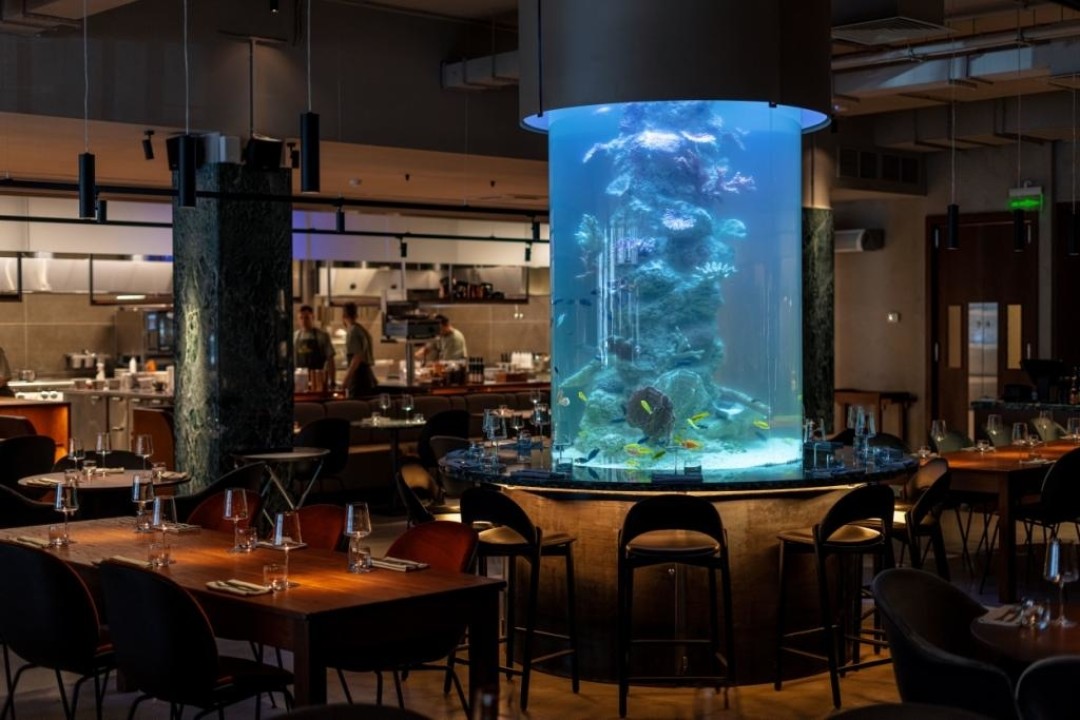 Масштабный рыбный ресторан Антонио Фреза (Jerome, Saviv): ледники и аквариум на 2300 литров, лавка с деликатесами, кухня с десятком цехов от пекарни до лаборатории пасты, «Улов дня» со всего мира, raw-бар с морепродуктами в виде карпаччо, севиче, тартаров и плато. Тональность меню фирменная для Антонио — Италия и Израиль.