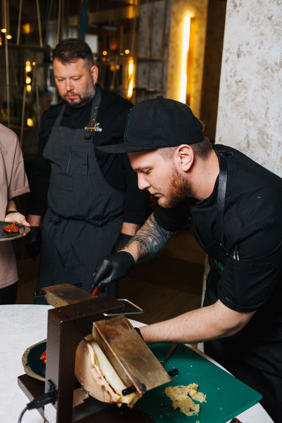 Сет-меню специально для важных гостей приготовил шеф-повар ресторана Игорь Вавилин. Гостей угощали трио тартаров из мраморной говядины, гратеном, осьминогом с икорным соусом и изящным кремом из премиального твёрдого сыра Dürr Classic 6-месячной выдержки. Игорь Вавилин отметил, что это его фирменные блюда. В завершении ужина всех покорил раклет-бар, где в главной роли снова выступил Dürr Classic в сочетании с разнообразными топпингами.