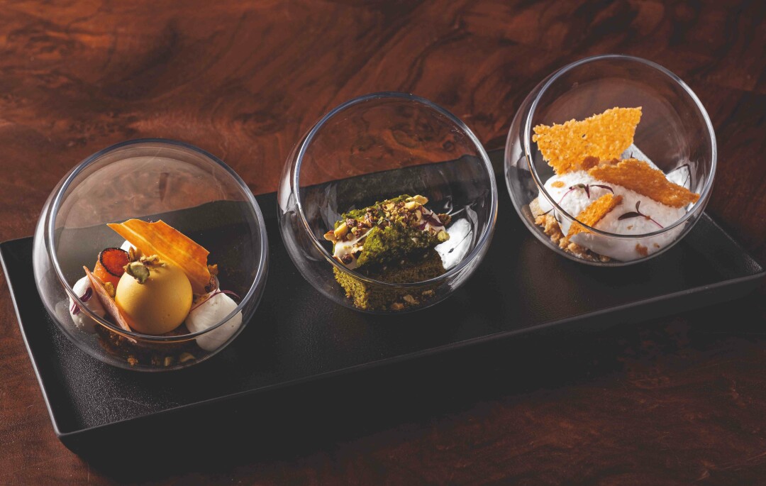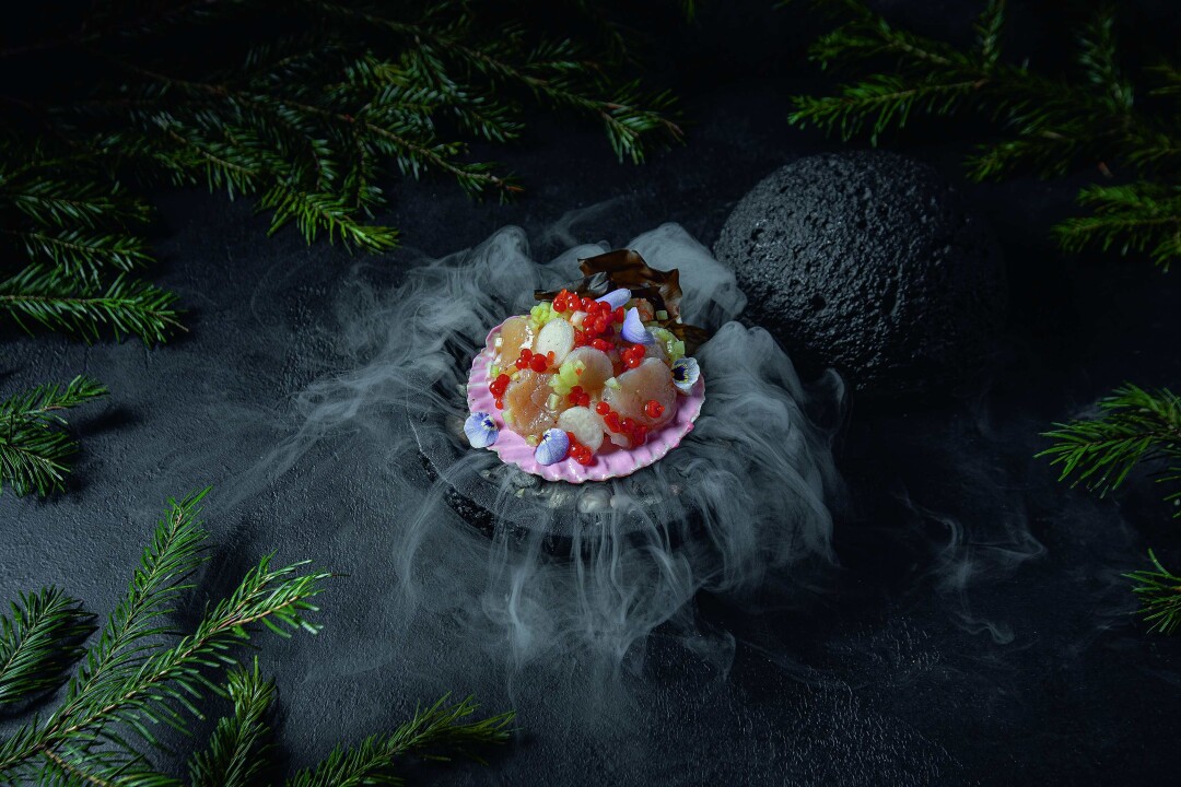 Мультисенсорный проект White Rabbit Family: в круглой комнате за круглым столом собираются 20 участников, и дальше пространство, посуда и еда — все становится частью дополненной реальности, за которой стоит работа со звуком, 3D-моделированием и нейросетями, например, проецируемые фрукты реагируют на прикосновения и их можно покатать по столу. О еде сложно говорить обособленно: сосиска из краба и гефилте фиш с черной икрой демонстрируют не только поварские техники, но и глубокие смыслы, вписанные в общую сюжетную канву. Сейчас идут все три спектакля, поставленные за три года существования гастротеатра, — Imaginary Russia (о вехах русской истории), Imaginary Art (оживляющий полотна русских художников) и Imaginary Future (о будущем всей планеты). С последними двумя спектаклями вторая Krasota, открытая в Дубае, получила два колпака от ресторанного гида Gault & Millau.