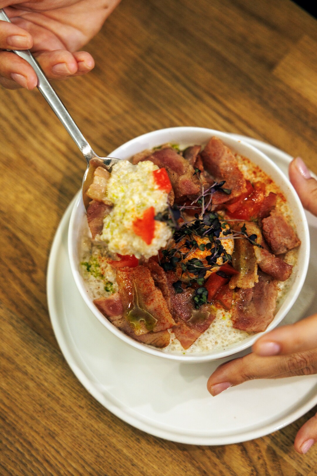 Небольшое заведение, в котором всегда много гостей, еще бы - ведь здесь подают кофе, десерты и, конечно, завтраки! В кафе-кондитерской позавтракать можно в течение всего дня с 08:00 до 21:00. Мы пробовали кашу из киноа на сливках с яйцом пашот и беконом, кабачковые блинчики с яйцом пашот и лососем (нежные и очень вкусные) и тартин с ветчиной, скрэмблом и голландским соусом. Здесь вы найдете большой выбор утренних блюд: от каш и сырников до салатов-боулов и сэндвичей.