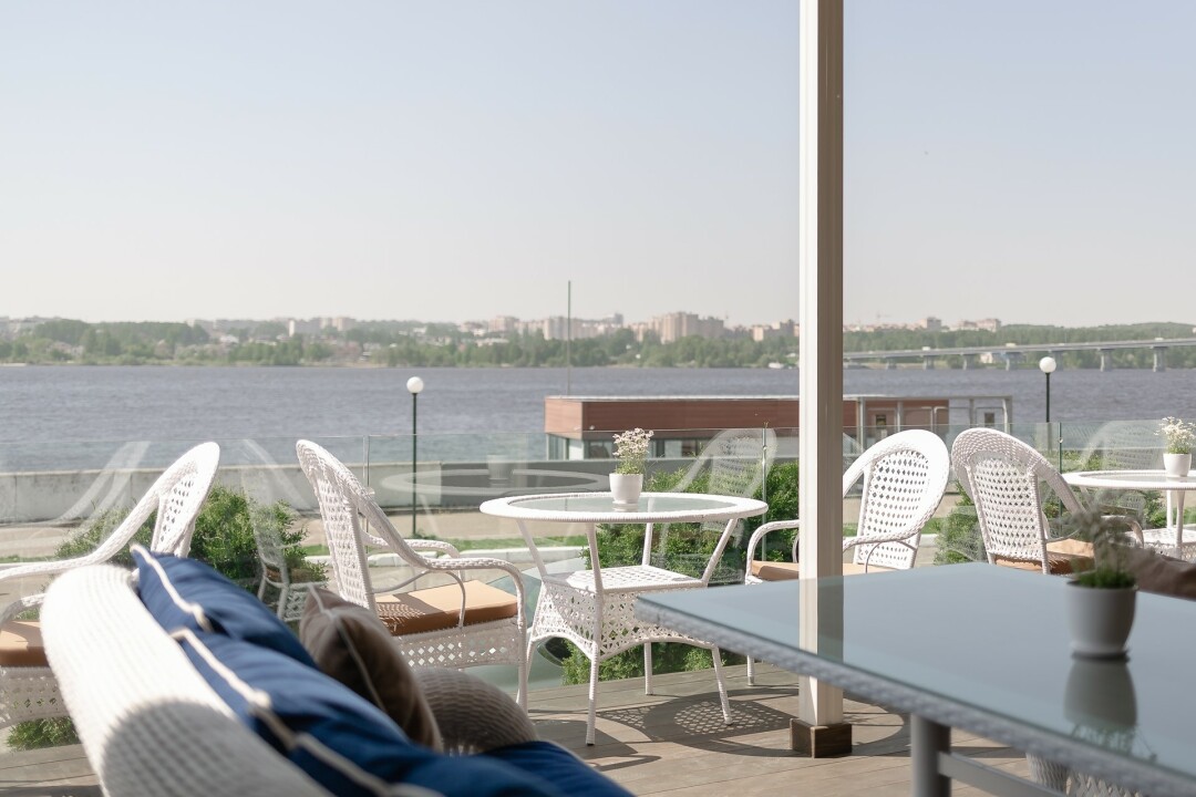 Наблюдать за бескрайним пейзажем и Волгой можно в ресторане «Ванильное небо». Интерьер в мягких тонах, теплое освещение и панорамные окна позволяют лучше прочувствовать атмосферу ужина с потрясающим гармоничным видом. Летом - большая веранда с цветами под открытым небом!