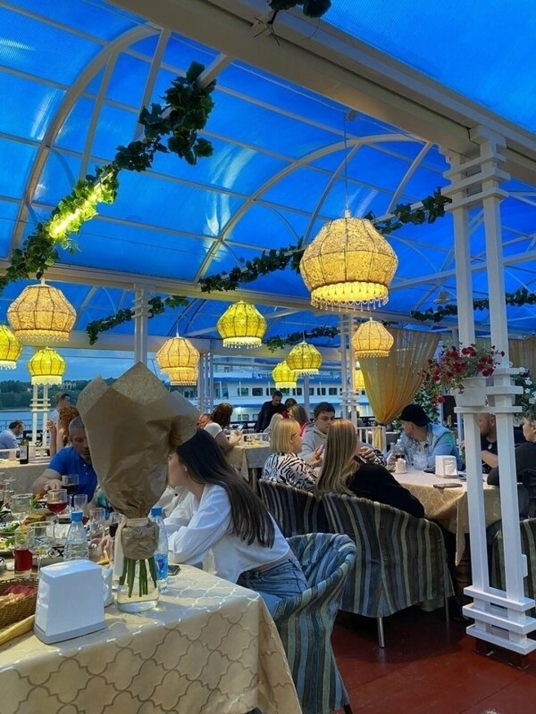 Окна в пол, изобилие зелени и светлая веранда с видом на Волгу - в ресторане удивляют не только аутентичной кухней с современными технологиями, но и прекрасной возможностью расслабиться, наблюдая за водой.