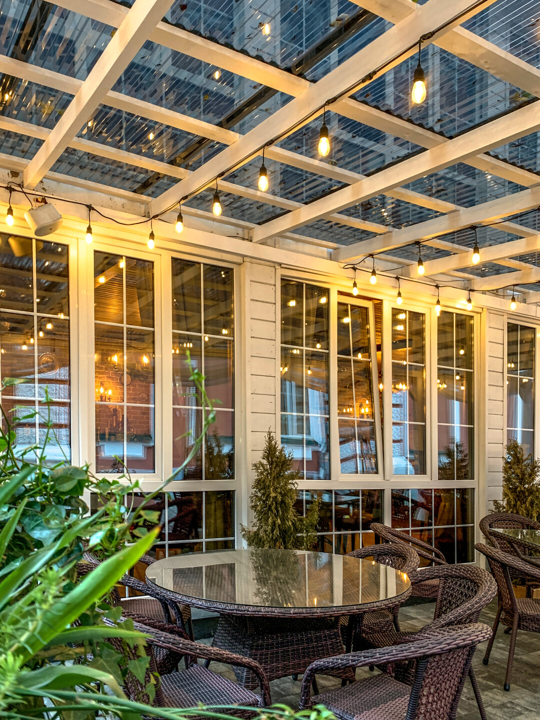 Русско-французскую кухню с 15 интерактивными блюдами невозможно представить без утонченной атмосферы и элегантного расслабляющего интерьера. А летом и теплой осенью делать гастро открытия можно на комфортной и цветущей веранде.