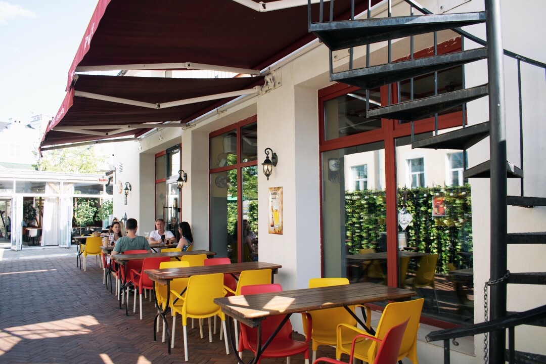 Вкусные эклеры, свежую выпечку и ароматный крепкий кофе подают в кафе с открытой импровизированной верандой. Она прячется под деревьями, выходит на две центральные улицы и располагает к уютным встречам с друзьями.