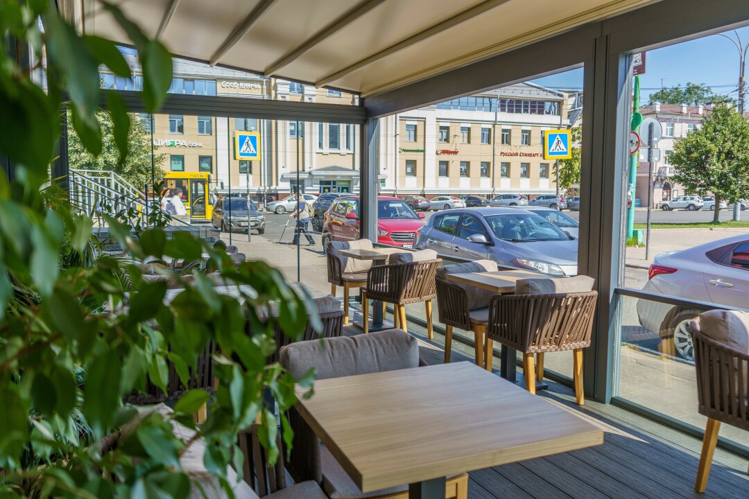 В теплое время года ресторан грузинской и европейской кухонь ставят колоритную веранду с прекрасным видом на исторические улицы Ярославля. Здесь гостей ждут сочные хачапури, блюда на открытом огне, аутентичная атмосфера Грузии и настоящее гостеприимство.