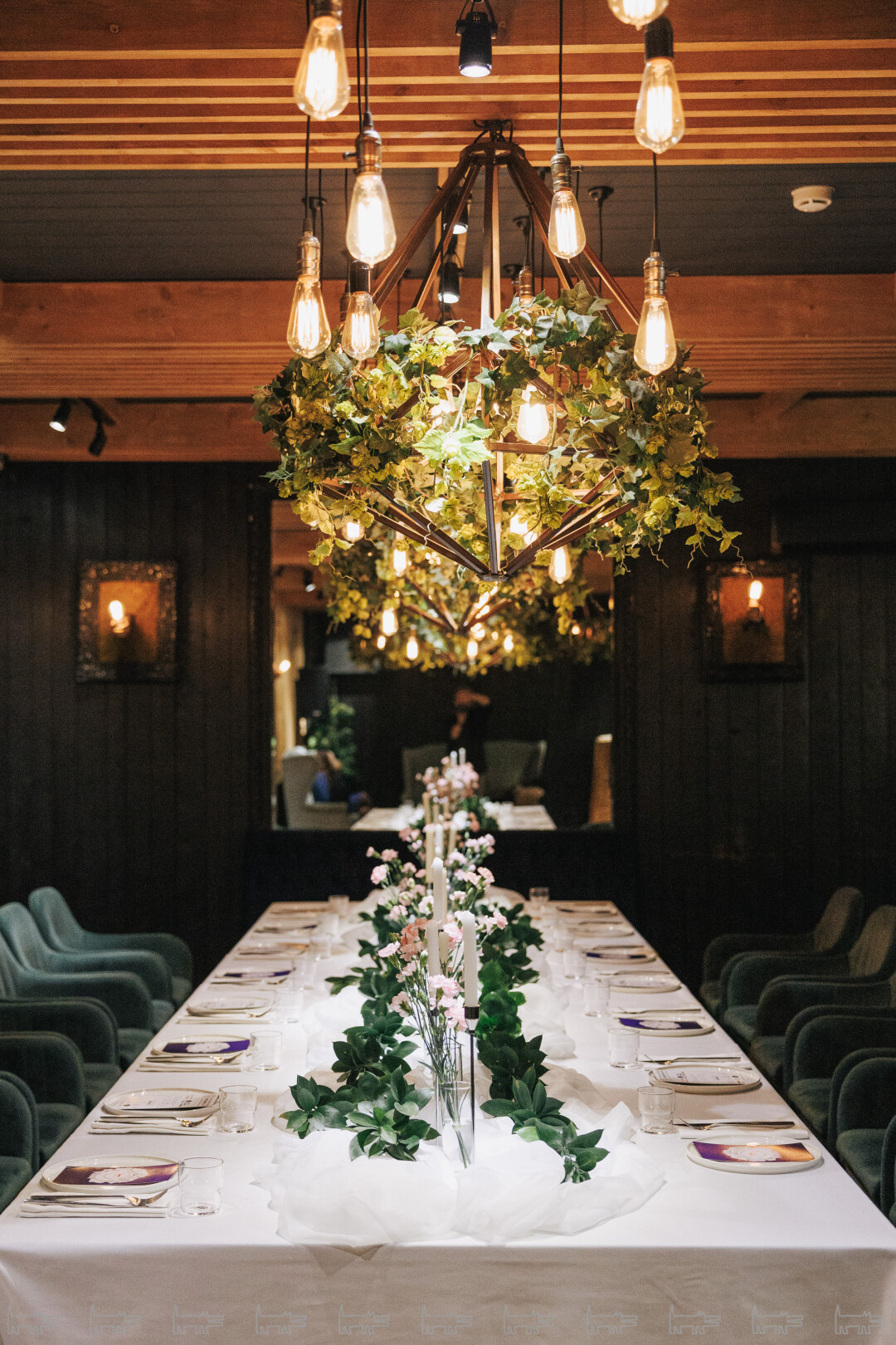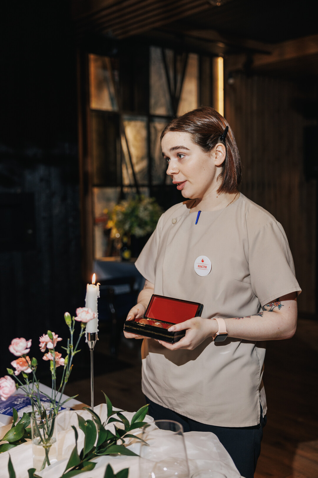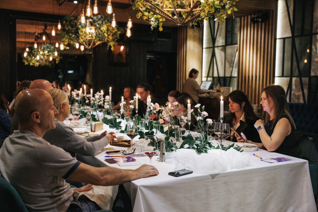 Меню ужина для собравшихся гостей разработал и приготовил шеф-повар ресторана Евгений Калинин. Угощали авторскими закусками, паштетом из печени цыпленка с сиропом из топинамбура. На первый курс шеф подготовил печеный перец рамиро с креветками и соусом ромеско, на второй - нежнейшую телятину шато с кетчупом из лука и копченым бататом. Перед подачей десерта гостей удивили конфетами «Палехская шкатулка». Ну и на сладкое Евгений лично презентовал сметанник с Васильевским пряником и свежими ягодами, который свел сума всех гостей своим вкусовым сочетанием. Евгений Калинин отметил, что десерт был разработан специально для данного ужина и в скором времени будет введен в основное меню.