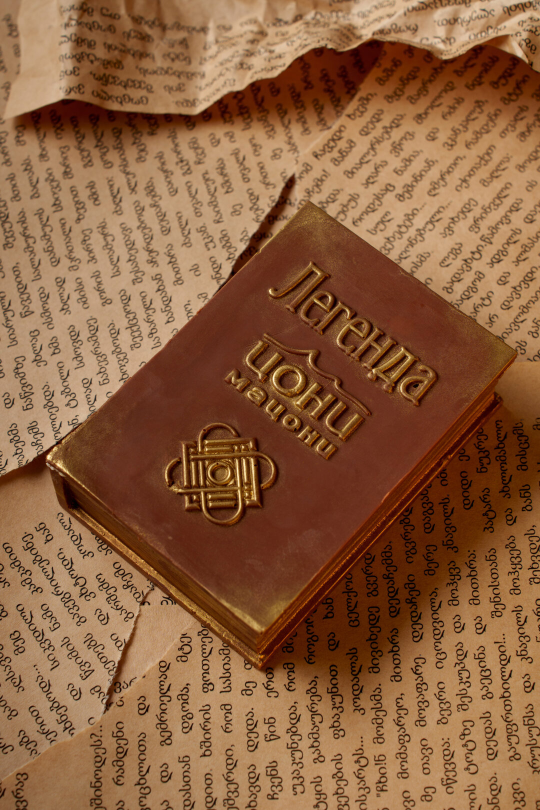 На создание десерта кондитеров вдохновила история про любовь и мужество двух молодых людей, которые смогли восстановить дружбу племен. Породнившиеся общины объединили свои названия — так появился регион Цони-Мацони. Внутри «книги» из шоколада и карамельного крем-мусса есть особое послание, но лишь каждая десятая «Легенда» хранит ключ.