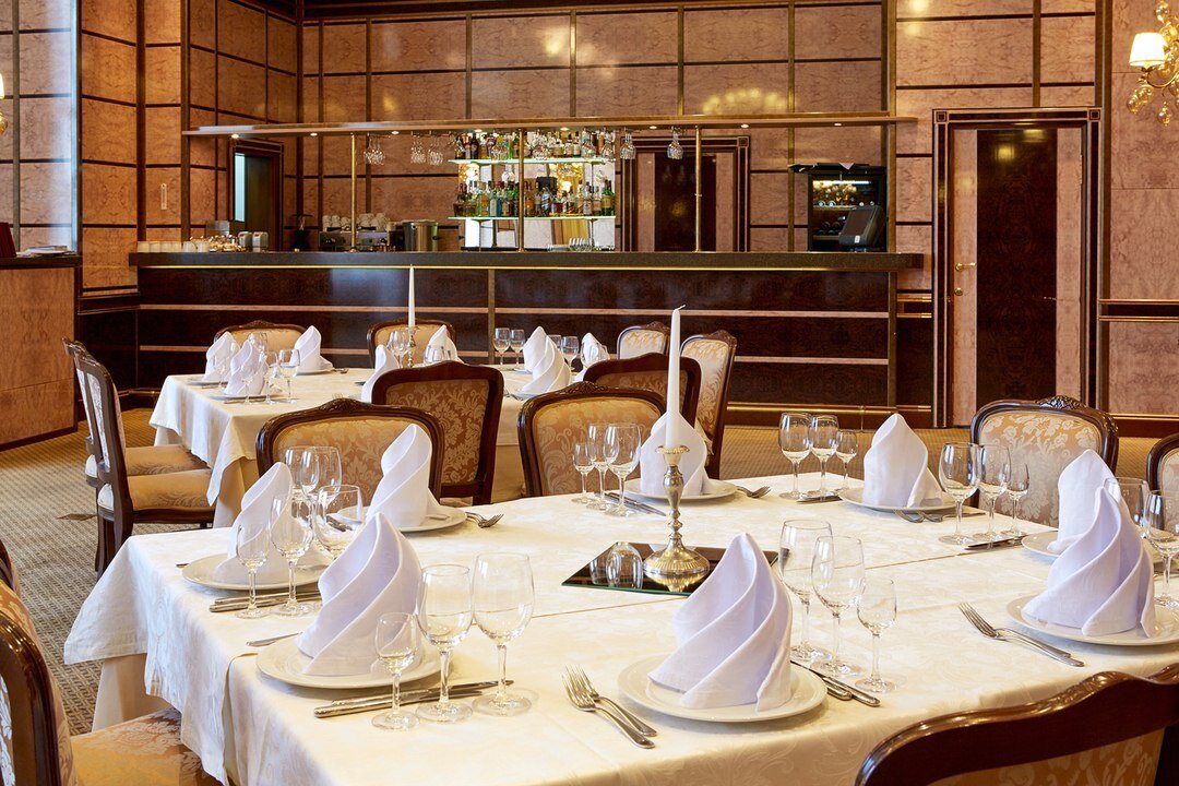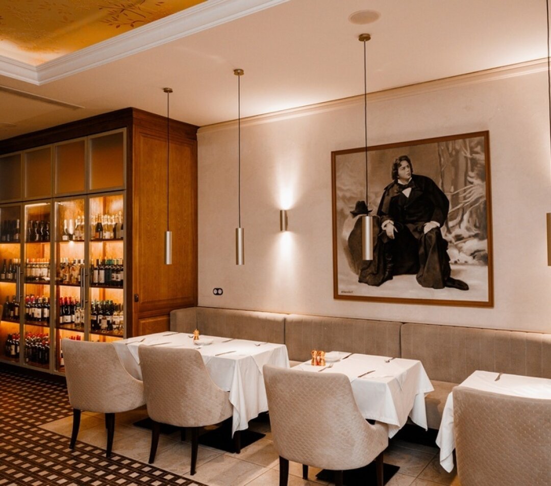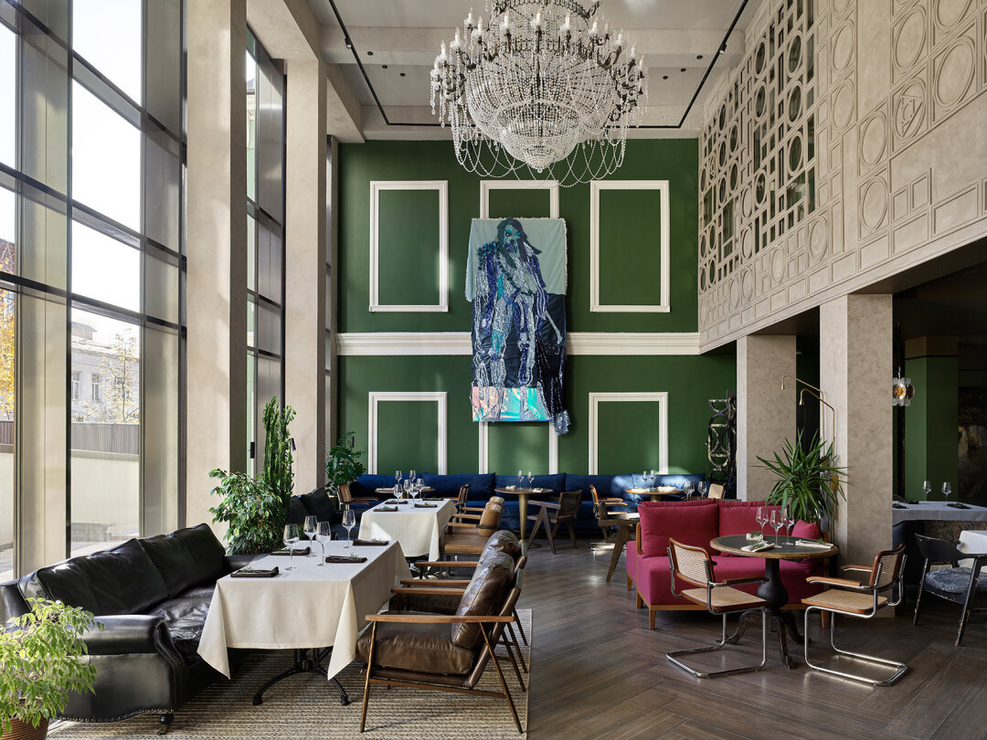 Сердце ресторанного комплекса отеля оформлено в стиле модерн. Интерьер — изысканный и элегантный — вдохновлен работами Леона Бакста. Еще приятное преимущества заведения: панорамные окна выходят на памятник архитектуры 17 века. А бренд-шеф Дмитрий Азаров создает гастро шедевры различных кухонь мира.