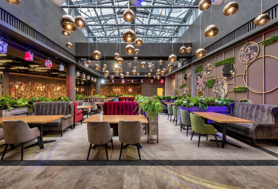 Это главный ресторан в комплексе. Здесь царит семейная атмосфера: есть игровая комната и детское меню, а по вечерам устраивают кинопоказы и тематические вечеринки. Меню разнообразное и включает несколько кухонь, а также есть коктейльная карта.