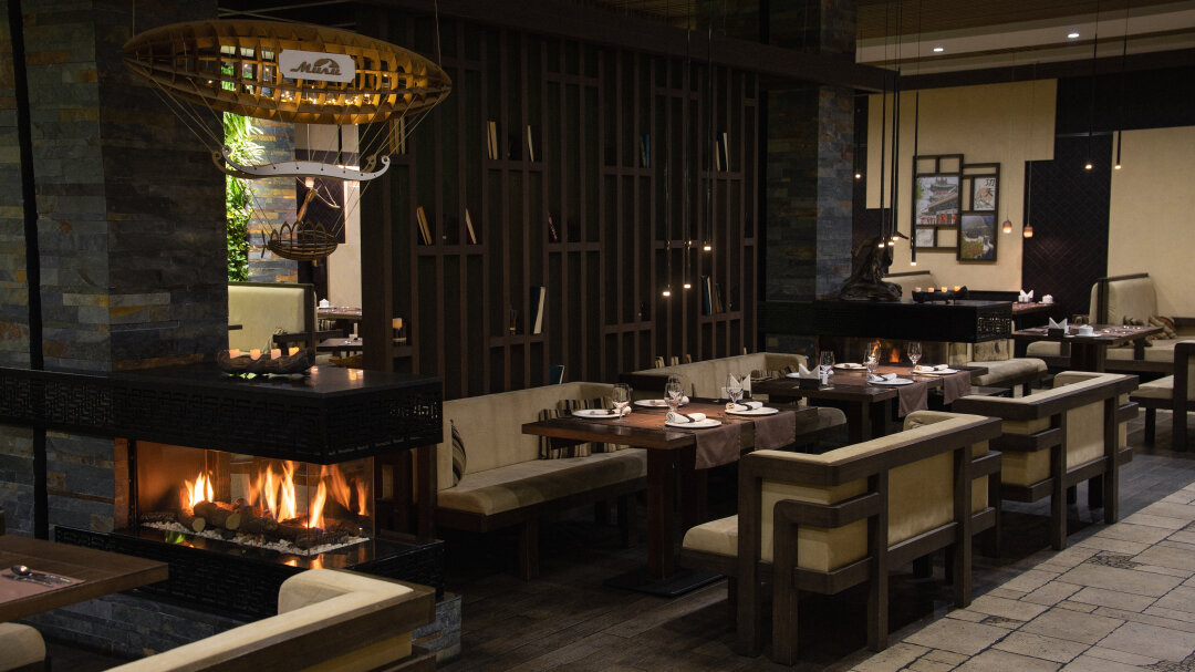 Просторный современный ресторан с русской и европейской кухней, где готовят итальянскую пиццу, крафтовый хлеб из собственной пекарни и фирменные десерты. Идея — близость с природой, поэтому в декоре много каменных и деревянных элементов, а вместо потолка — купол.